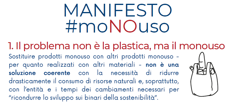 1. Il problema non è la plastica, ma il monouso: Sostituire prodotti monouso con altri prodotti monouso, seppur a minor impatto ambientale, non è una soluzione coerente con la necessità di ridurre drasticamente il consumo di risorse naturali e, soprattutto, con l’entità e i tempi dei cambiamenti necessari per “ricondurre lo sviluppo sui binari della sostenibilità”.