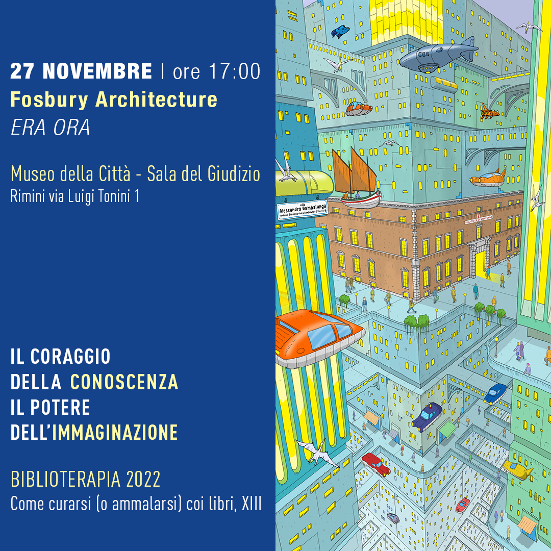 “Il coraggio della conoscenza, il potere dell’immaginazione” è il titolo della tredicesima edizione della rassegna che chiama intellettuali e creativi, scienziati e filosofi, attraverso le proprie ricerche e i propri libri, a proporre percorsi di riflessione utili per affrontare l’incertezza e il disorientamento del tempo presente, muovendo intorno a due idee guida: il coraggio di affrontare con mente aperta la complessità presente, l'energia creativa per immaginare il futuro. E proprio la creatività, attraverso la trasversalità e l’interdisciplinarietà proprie dei linguaggi dell’architettura contemporanea, sarà protagonista dell’appuntamento di domenica 27 novembre quando l’architetto Alessandro Bonizzoni, a nome del collettivo Fosbury Architecture, a cui è stata assegnata la realizzazione del padiglione Italia alla prossima Biennale Architettura 2023 di Venezia, proporrà una riflessione su quello che l’architettura potrebbe fare per aiutare la transizione ecologica. ERA ORA è il titolo del contributo che evoca l’attesa per un processo che dovrebbe sempre iniziare “ora” ma che viene sistematicamente rimandato.