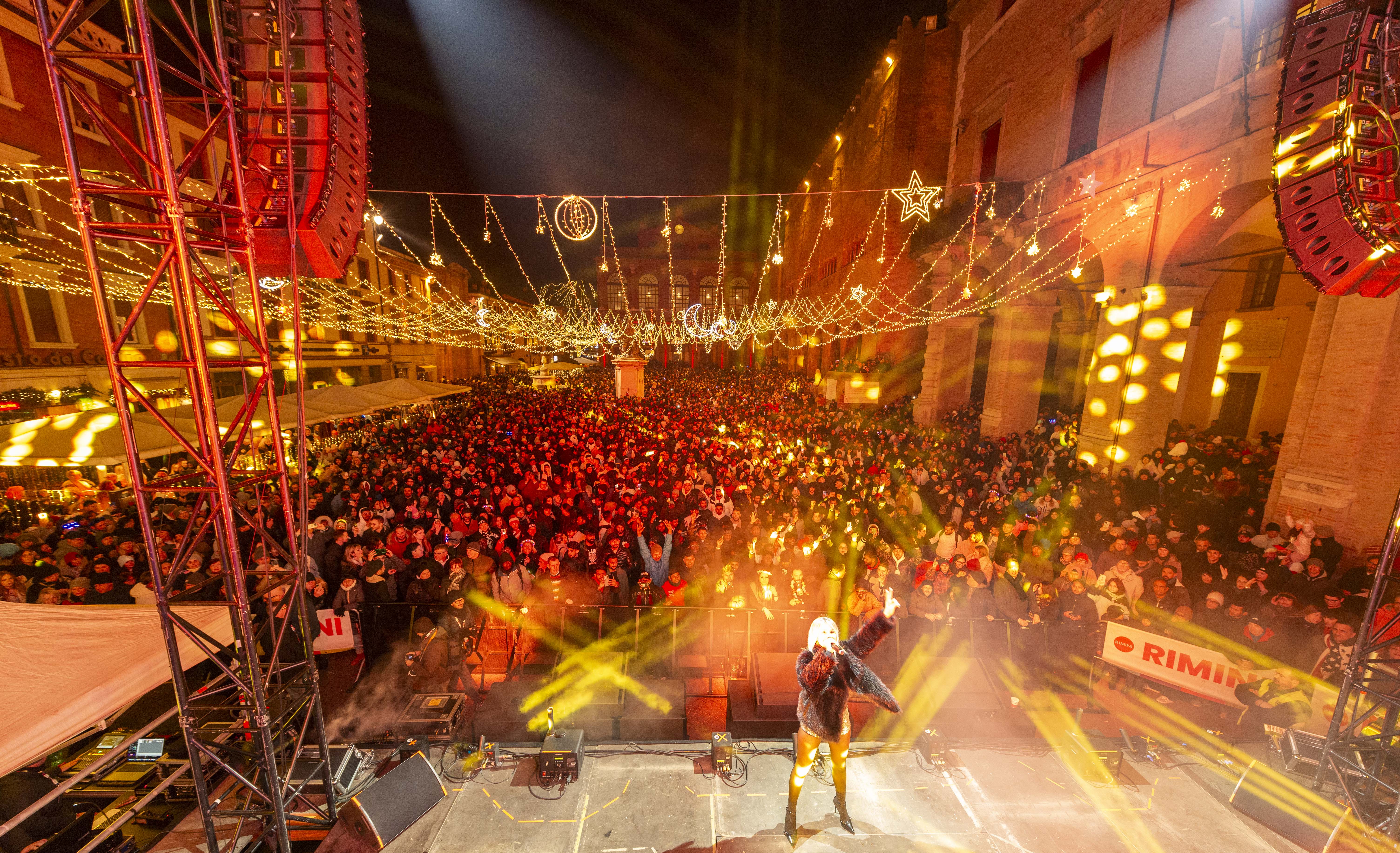 Gremite le due piazze, in contemporanea, con il dej set di RDS 100% GRANDI SUCCESSI e il concerto di Vinicio Capossela in un flusso continuo di persone alla ricerca di atmosfere sempre nuove e travolgenti, fino al momento del doppio brindisi di mezzanotte in piazza Cavour con Roberta Lanfranchi insieme al Sindaco di Rimini Jamil Sadegholvaad e in piazza Malatesta con Vinicio Capossela al suono di Sciusten Feste fra lo swing alla Louis Prima, e il folklore italo-americano, pezzi festivi, ottoni e vibrafòni. Con una dedica speciale tutta per Rimini in una quadrilogia di rimandi che sono passati dall’omaggio alla celebre scena di Gradisca al Grand Hotel fino a La Strada con il brano Zampanò, e poi il rimando a la ‘Prima notte di quiete’ di Zurlini con ‘Domani è un altro giorno’ di Ornella Vanoni, fino all’immancabile reinterpretazione di ‘Romagna Mia’ affidata all’eclettico polistrumentista riminese e virtuoso del Theremin Vincenzo Vasi, colonna della band di Capossela.