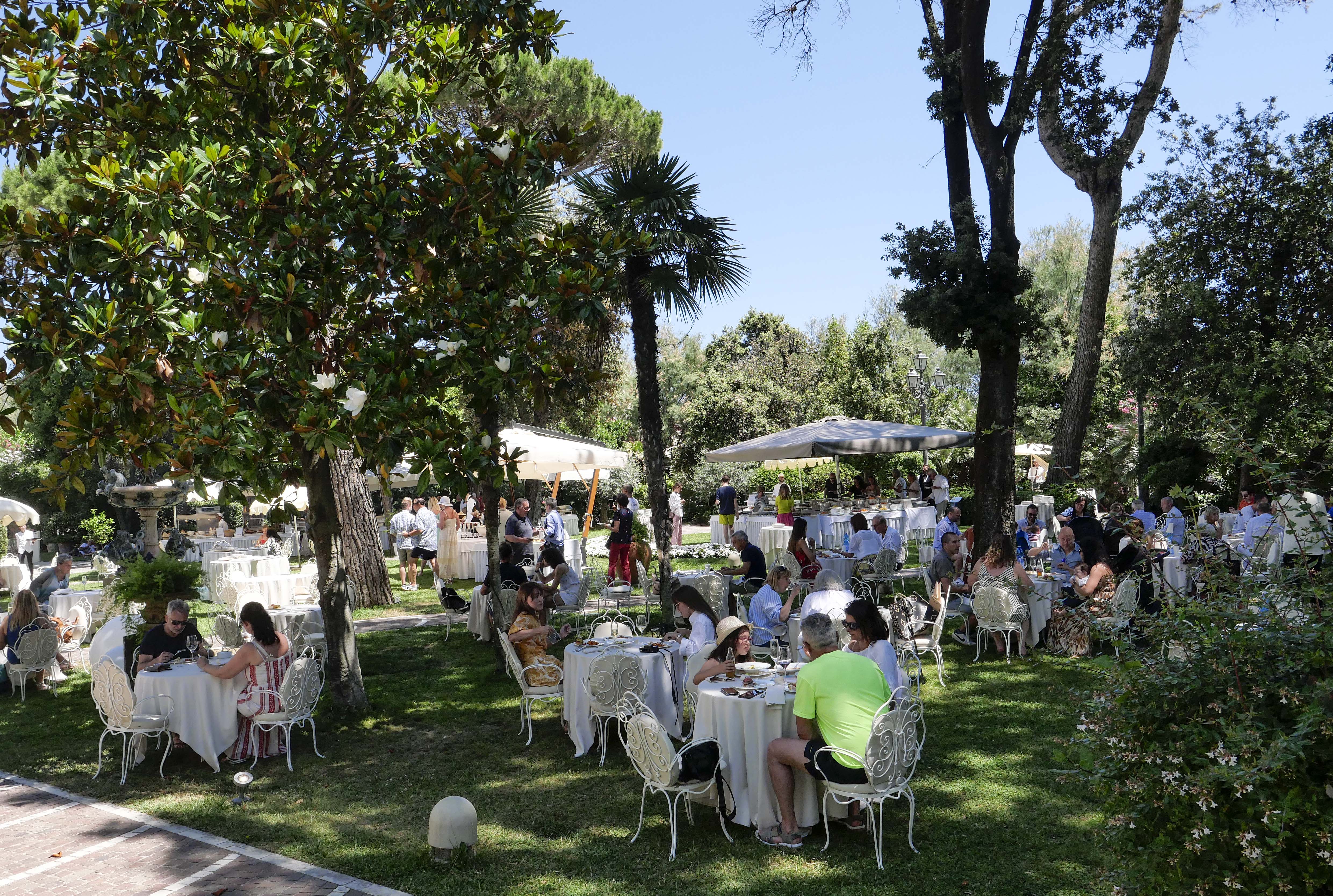Una domenica di inizio estate che come ormai tradizione, ha visto la magia di Al Mèni avvolgere anche il giardino del Grand Hotel di Rimini, splendido set per il déjeuner sur l'herbe, uno speciale pic nic sull’erba cura di Claudio di Bernardo, chef del Grand Hotele con Roberto Rinaldini, maestro di pasticceria.