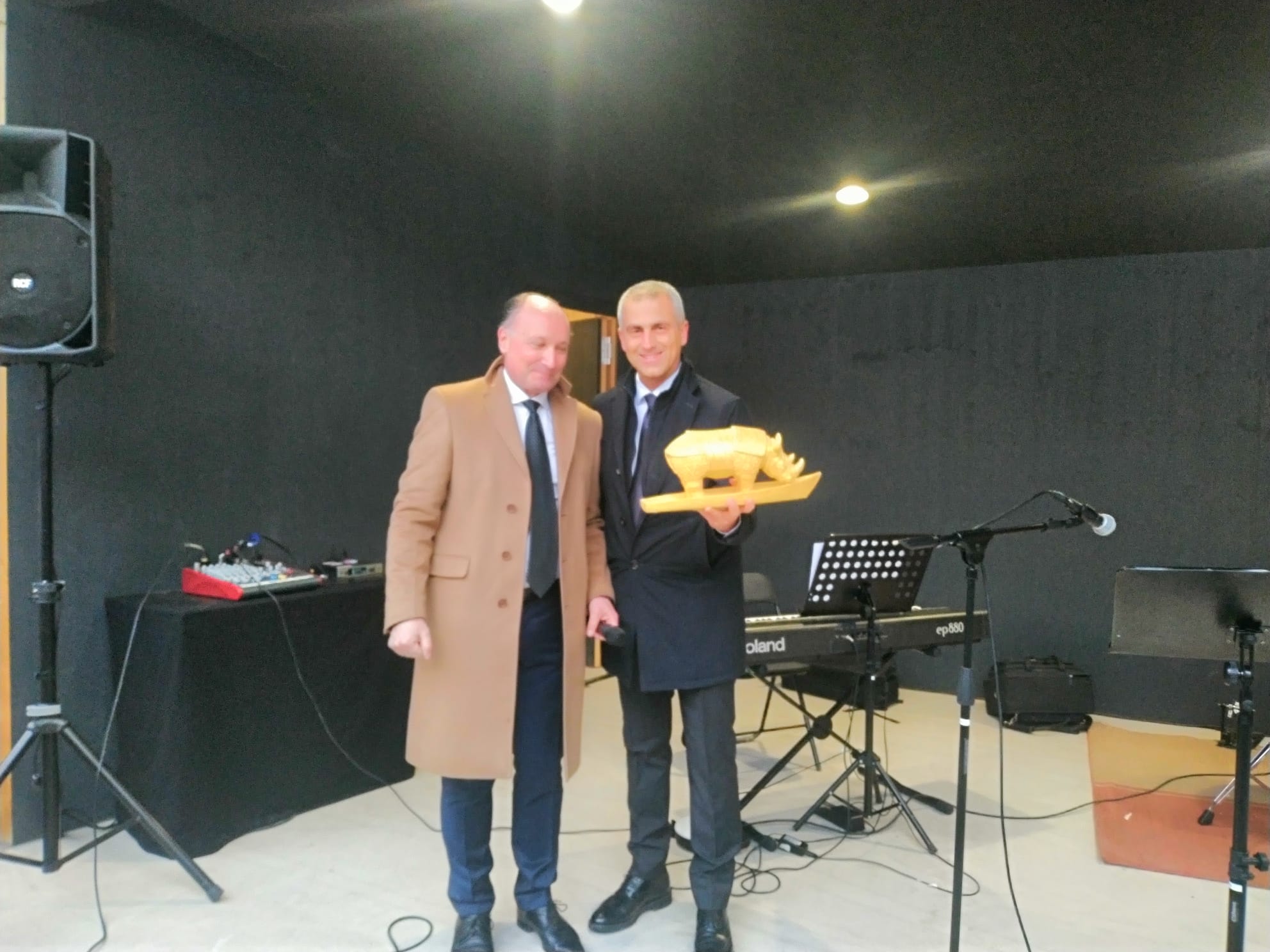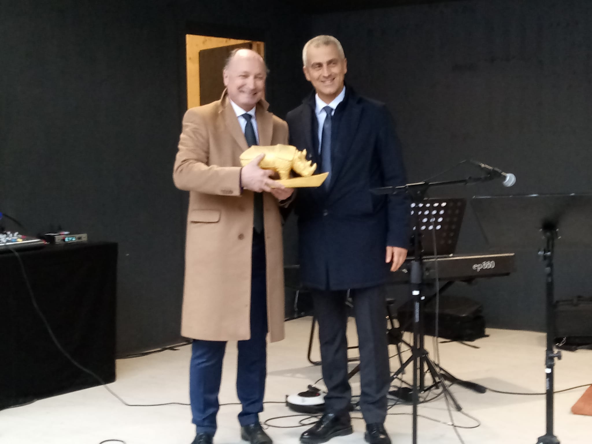 Presenti anche il Presidente della Città di Sion Philippe Varone e il Presidente della Fondation Fellini pour le Cinéma di Sion Stéphane Marti, a cui il primo cittadino Sadegholvaad ha consegnato la statua raffigurante "Rina", la rinocerontessa diventata simbolo del Fellini Museum.
