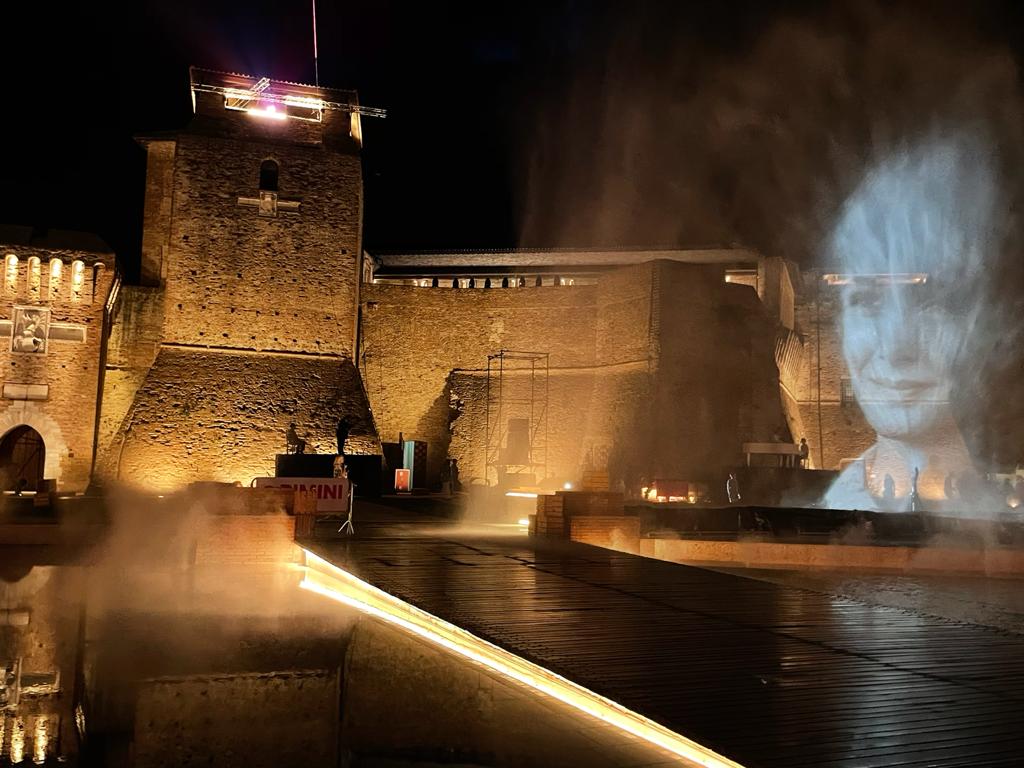 Immagini volanti, proiezioni e suggestioni per lo spettacolo di apertura del Fellini Museum