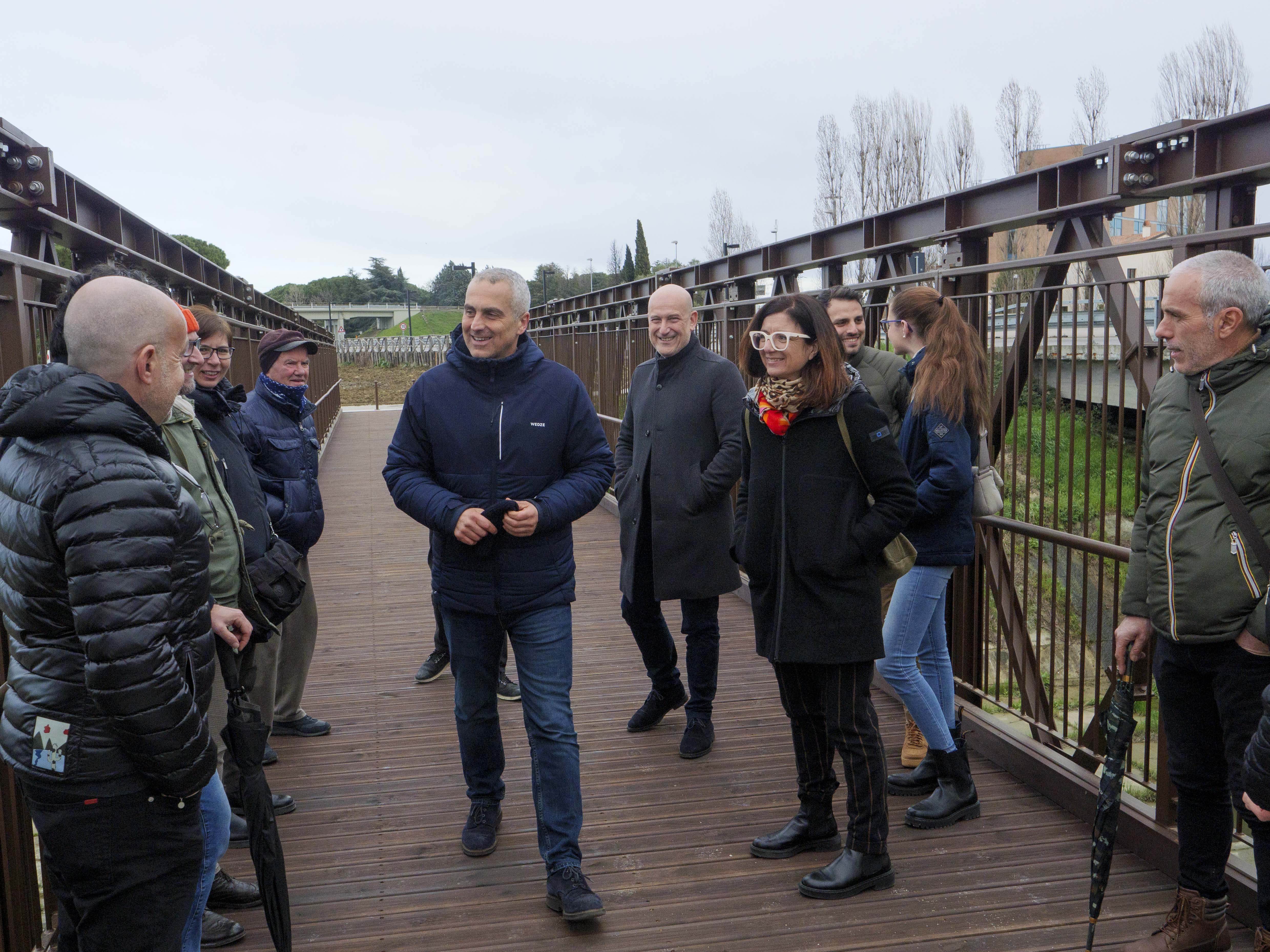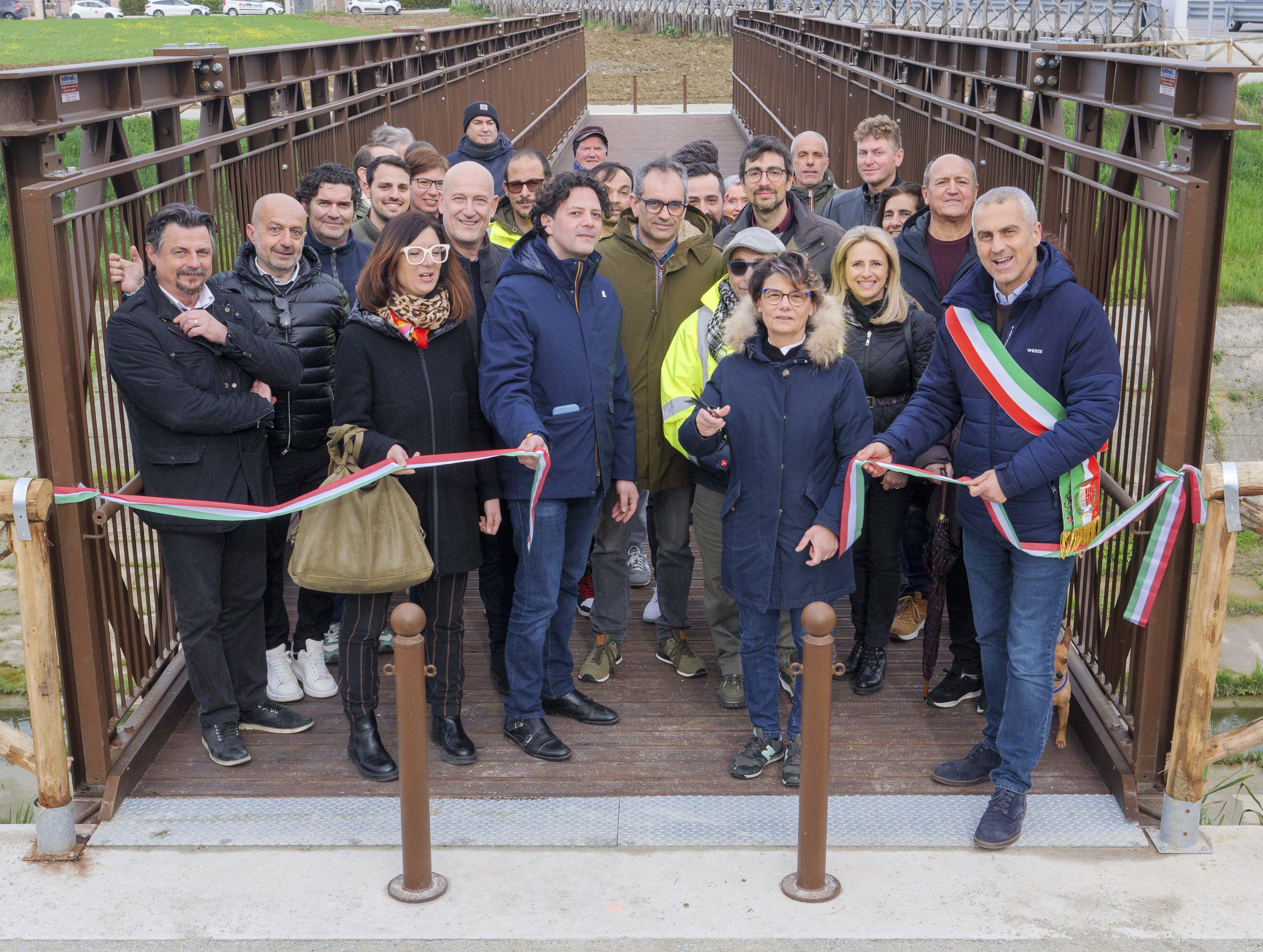 Realizzato in affiancamento all’esistente ponte carrabile lungo la Strada Consolare 72, Rimini – San Marino, è stato inaugurato questo pomeriggio il nuovo ponte ciclo pedonale sul deviatore Ausa, realizzato per garantire una continuità con il percorso ciclo pedonale esistente che era interrotto proprio in corrispondenza del Deviatore Ausa. Alla presenza del Sindaco Jamil Sadegholvaad, dell’assessore ai lavori pubblici Mattia Morolli e dell’assessora alla mobilità Roberta Frisoni, il ponte è stato inaugurato e consegnato ai tanti cittadini del quartiere che da tempo attendevano una struttura di collegamento tra la Grotta Rossa e la zona a mare del torrente Ausa. L’opera infatti era molto attesa dai residenti della zona e da chi vi transita abitualmente, in quanto segna un passo significativo per il miglioramento della mobilità dell’area in chiave sostenibile e di accessibilità.