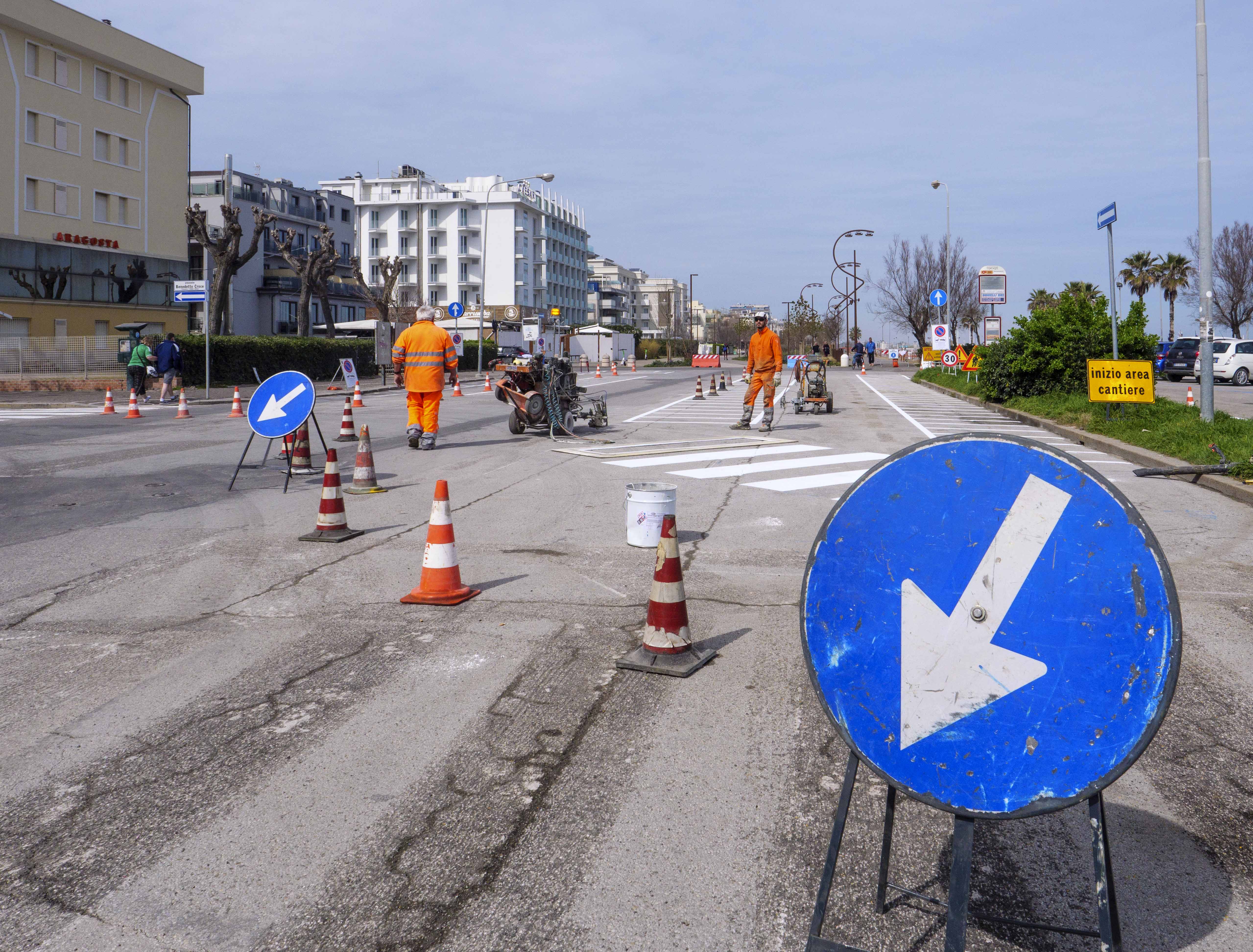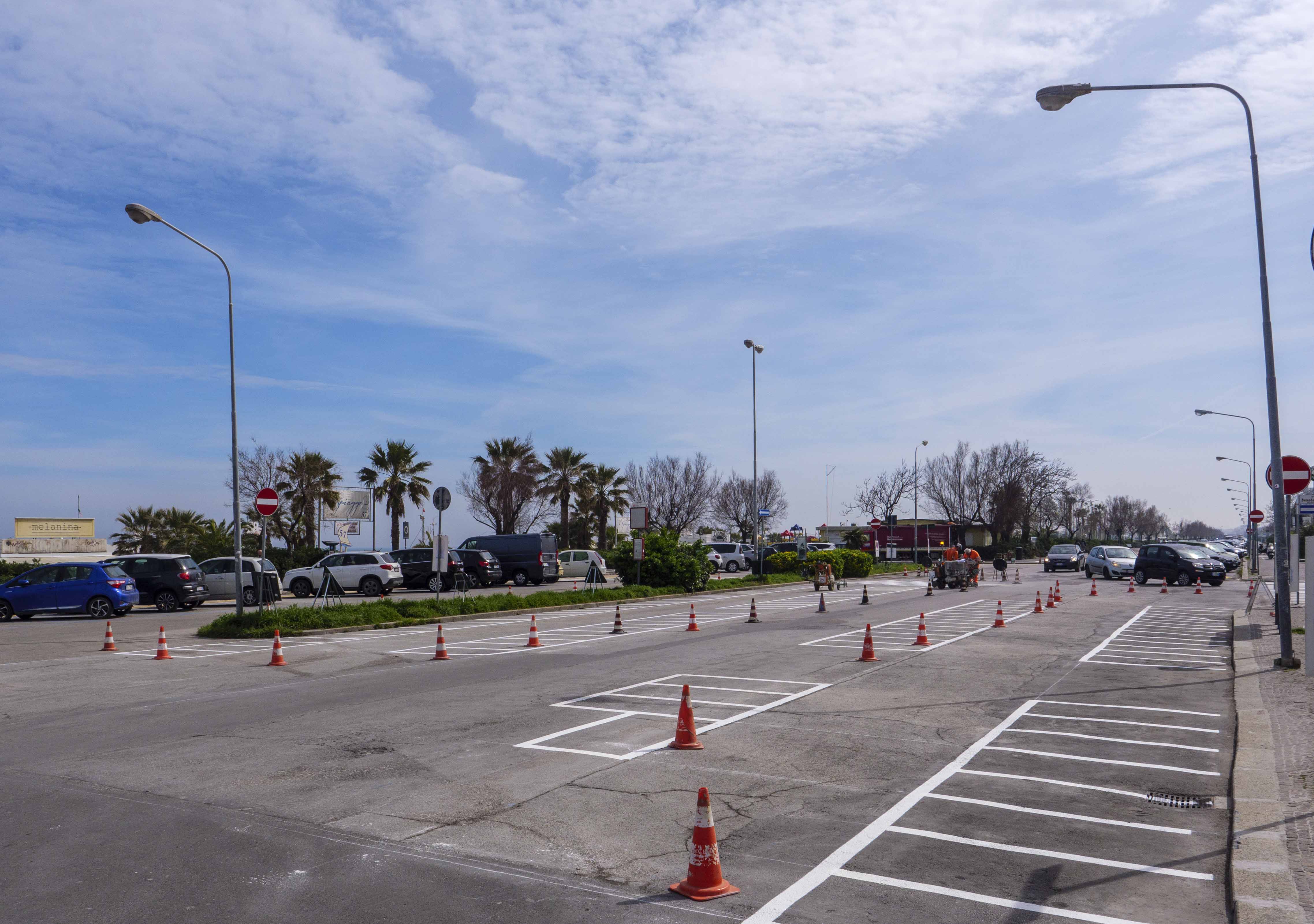Sono iniziati i lavori di realizzazione della segnaletica orizzontale e verticale nel tratto 3 del Parco del mare, da Piazzale Marvelli a Piazzale Benedetto Croce,.