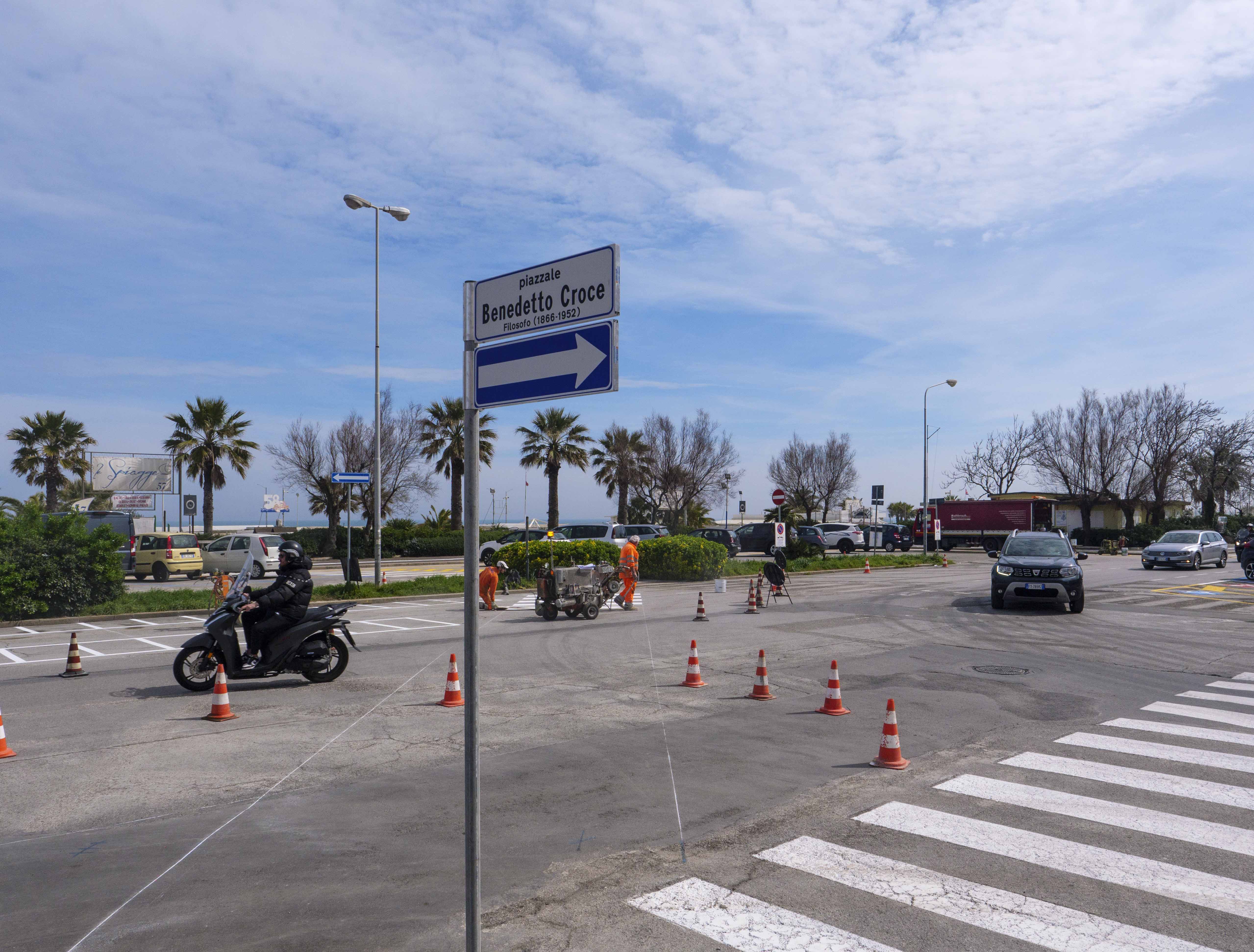 I lavori comprendono la realizzazione di nuova segnaletica per disciplinare la circolazione veicolare, ciclabile e pedonale, da Piazza Marvelli a Piazzale Benedetto Croce e vie trasversali e la realizzazione di nuova viabilità, parcheggi per motorini e motocicli e posti auto su Piazzale Benedetto Croce.