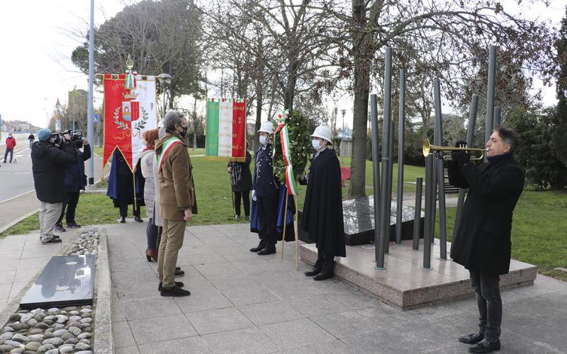 Un momento di grande commozione, accompagnato dalle note del ‘silenzio’, suonato dalla tromba dal Maestro Stefano Serafini. Alla solenne commemorazione, davanti al monumento dedicato alle vittime dei lager nazisti e di tutte le prigionie, erano presenti il Sindaco Andrea Gnassi, il Prefetto di Rimini Giuseppe Forlenza e la Presidente dell’Associazione Nazionale ex internati di Rimini Sonia Tamburini. Una celebrazione svoltasi in forma ridotta rispetto agli altri anni a causa delle limitazioni previste dall’emergenza sanitaria, dove sono mancati gli studenti e degli altri app delle istituzioni e delle altre associazioni combattentistiche e d’arma che solitamente animano e danno vita alla commemorazione.