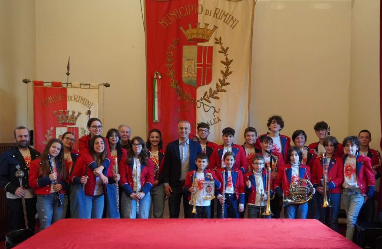 La Banda Giovanile "Città di Rimini" con il suo direttore Maestro Andrea Brugnettini è stata ricevuta ieri dal sindaco Jamil Sadegholvaad in occasione del decimo anniversario di fondazione. Un incontro emozionante per i giovani concertisti, durante il quale il sindaco ha espresso il suo sostegno per i progetti futuri dei giovani musicisti e per la prossima partecipazione all'XI World Orchestra Festival in programma a Vienna dal 23 al 26 luglio, per il quale la Banda ha ricevuto l'invito da parte degli organizzatori della manifestazione.