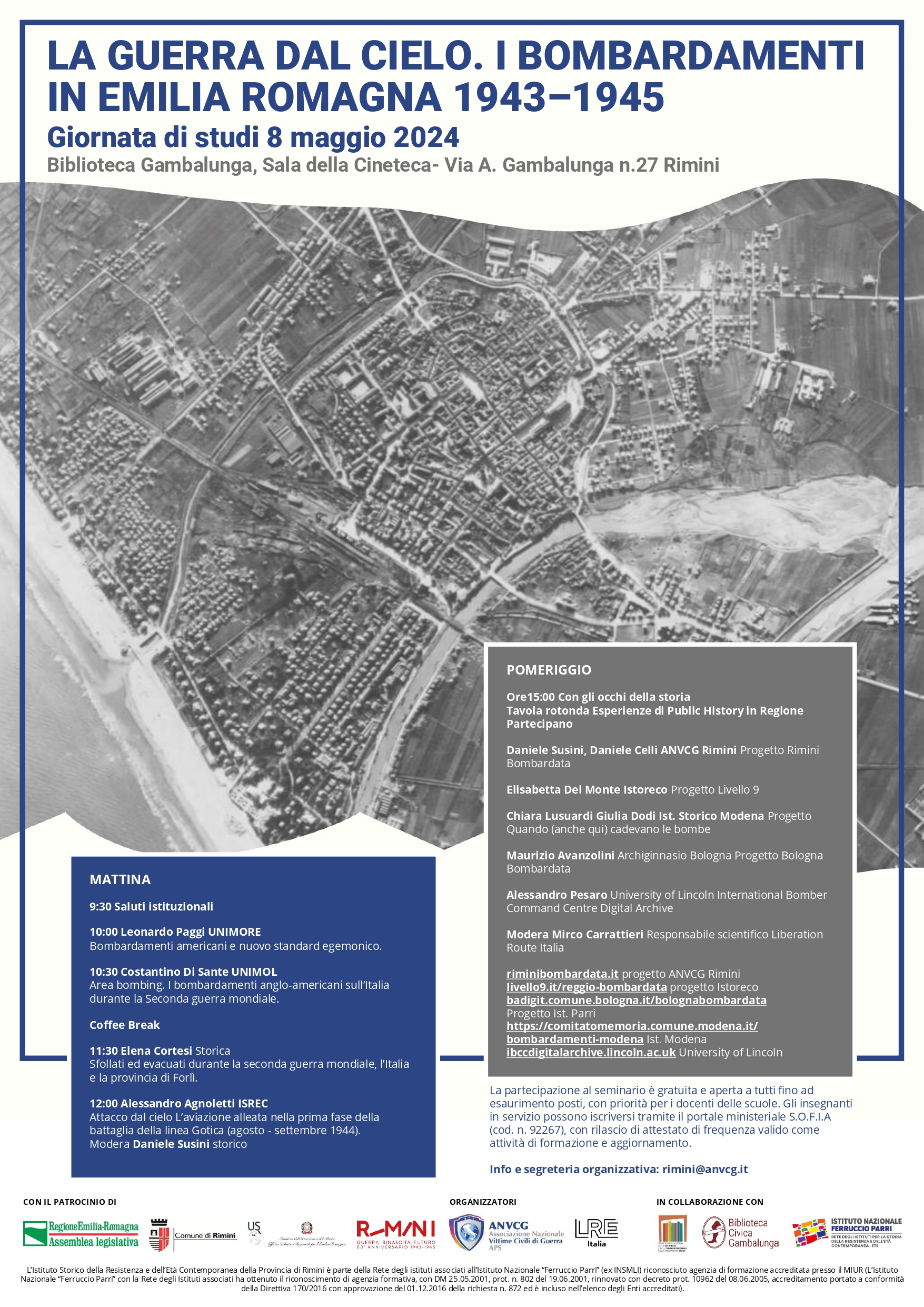 Nel pomeriggio interverranno i referenti storici e scientifici di alcuni progetti regionali, che hanno raccontato i bombardamenti alle proprie comunità di riferimento, da Reggio Emilia a Rimini, da Bologna a Modena, passando dal Regno Unito per una riflessione sul punto di vista che emerge dagli archivi inglesi.