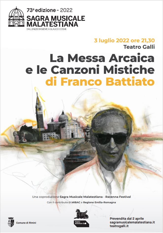 Da sabato 2 aprile apriranno le prevendite per un concerto frutto della prolifica collaborazione tra Sagra Musicale Malatestiana e Ravenna Festival, che ha dato vita ad una produzione originale che vedrà salire sul palco tre solisti come Simone Cristicchi, Juri Camisasca e Alice, artisti accomunati dall’aver condiviso un pezzo di strada con Franco Battiato. Insieme a loro il mezzosoprano Cristina Baggio, l’Orchestra Bruno Maderna e il Coro della Cattedrale di Siena “Guido Chigi Saracini”.
