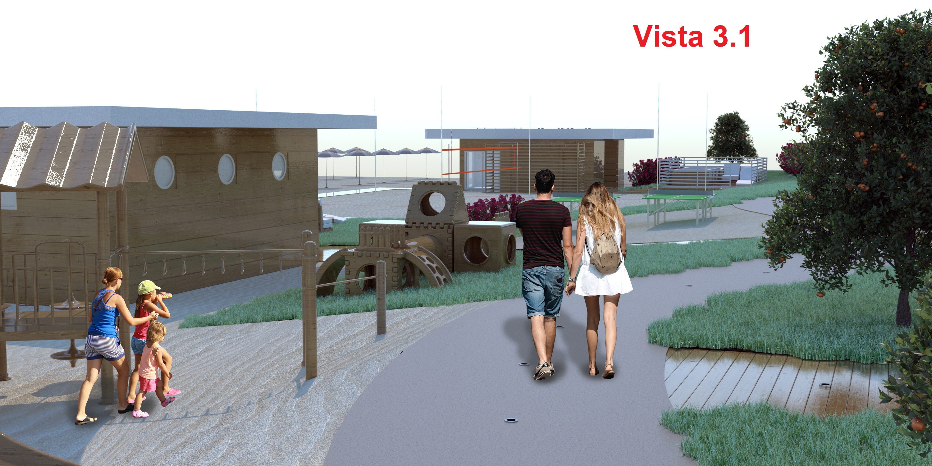 Con il progetto pilota presentato dai titolari dei due stabilimenti si intende dare una caratterizzazione del tutto nuova alla spiaggia, seguendo le indicazioni contenute nel vigente piano dell’arenile: la fascia A (a monte) sarà contraddistinta da una linea sinuosa che consentirà di portare il verde nel cuore dello stabilimento. Nelle aree verdi troveranno spazio i giochi per bambini e due campi da ping pong, mentre nell’area sabbiosa sarà realizzato il campo da beach volley. Lungo il percorso pedonale saranno posizionate panchine e punti luce a terra con caratteristiche pensate per limitare l’inquinamento luminoso ma capaci di garantire un’adeguata illuminazione La fascia rappresenta il cuore direzionale ed operativo dello stabilimento, dove troveranno collocazione le strutture di servizio che saranno accorpate in modo da compattare i volumi. Sulla copertura degli spogliatoi è prevista la possibilità di inserire pannelli fotovoltaici o solare termico per la fornitura di acqua calda destinata alle docce. L’area destinata all'ombreggio (fascia C), prevede uno spazio per ogni ombrellone di almeno 18 mq.