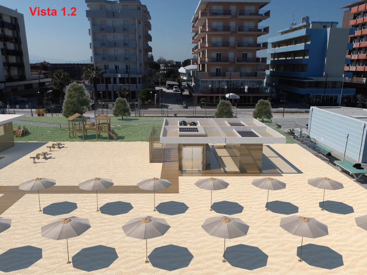 Con le opere in programma si andrà a rinnovare profondamente la conformazione dei due stabilimenti presenti nei pressione dello sbocco verso il mare di via Tolemaide e che oggi presentano morfologia e l’organizzazione tipica degli stabilimenti balneari degli anni Settanta, con la presenza di strutture in cemento per ospitare spogliatoi, servizi, deposito e aree dedicate al gioco e allo sport nella fascia più vicina al lungomare, creare una sorta di ‘barriera’ che limita la permeabilità visiva verso la battigia.
