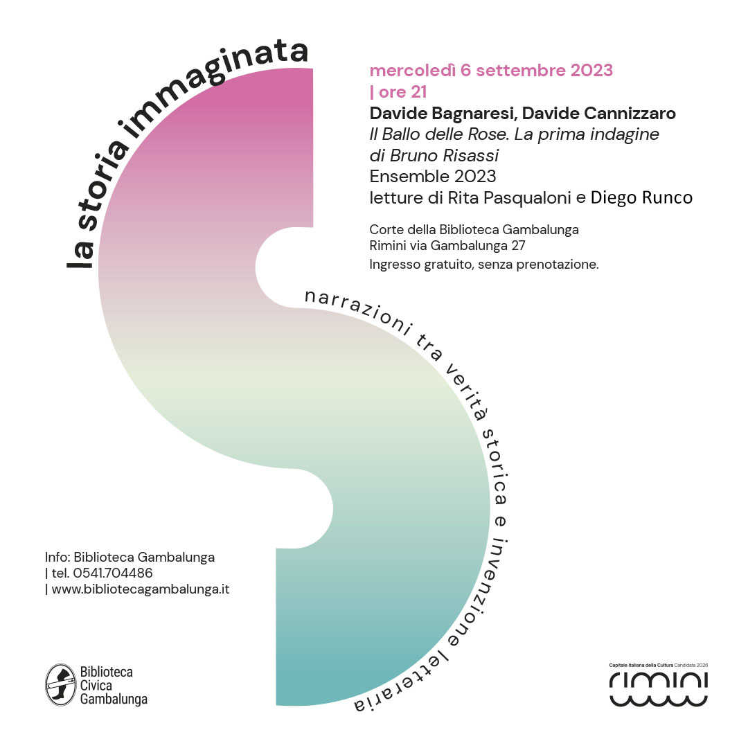 Mercoledì 6 settembre alle ore 21 nella corte della Biblioteca Gambalunga proseguono gli appuntamenti della rassegna letteraria “La storia immaginata” dedicata alle forme del romanzo storico italiano contemporaneo. Con una presentazione animata dalle letture sceniche di Diego Runco e Rita Pasqualoni si parlerà di “Il Ballo delle Rose. La prima indagine di Bruno Risassi” (Ensemble 2023) romanzo scritto a quattro mani da Davide Bagnaresi e Davide Cannizzaro.
