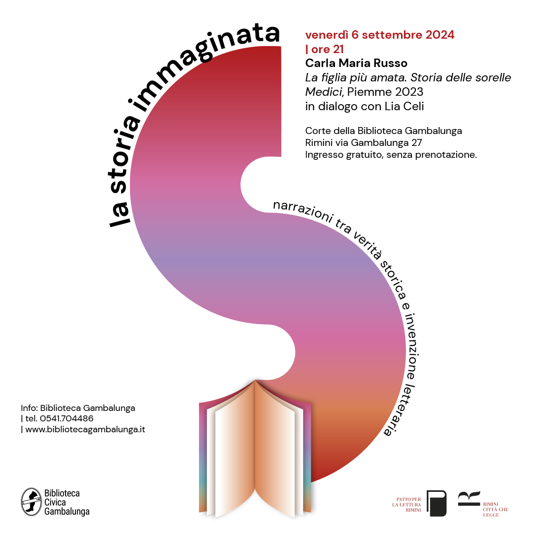 Il Rinascimento tra pubblico e privato protagonista del penultimo incontro della rassegna “La storia immaginata” che venerdì 6 settembre (Corte della Biblioteca Gambalunga, ore 21) ospita Carla Maria Russo con il suo nuovo romanzo La figlia più amata. Storia delle sorelle Medici (Piemme 2023). Un'affascinante opera storica che riporta al cuore del Rinascimento italiano, con il racconto della figura di Cosimo I de' Medici, uomo dai tratti originali e poco convenzionali per il suo tempo.