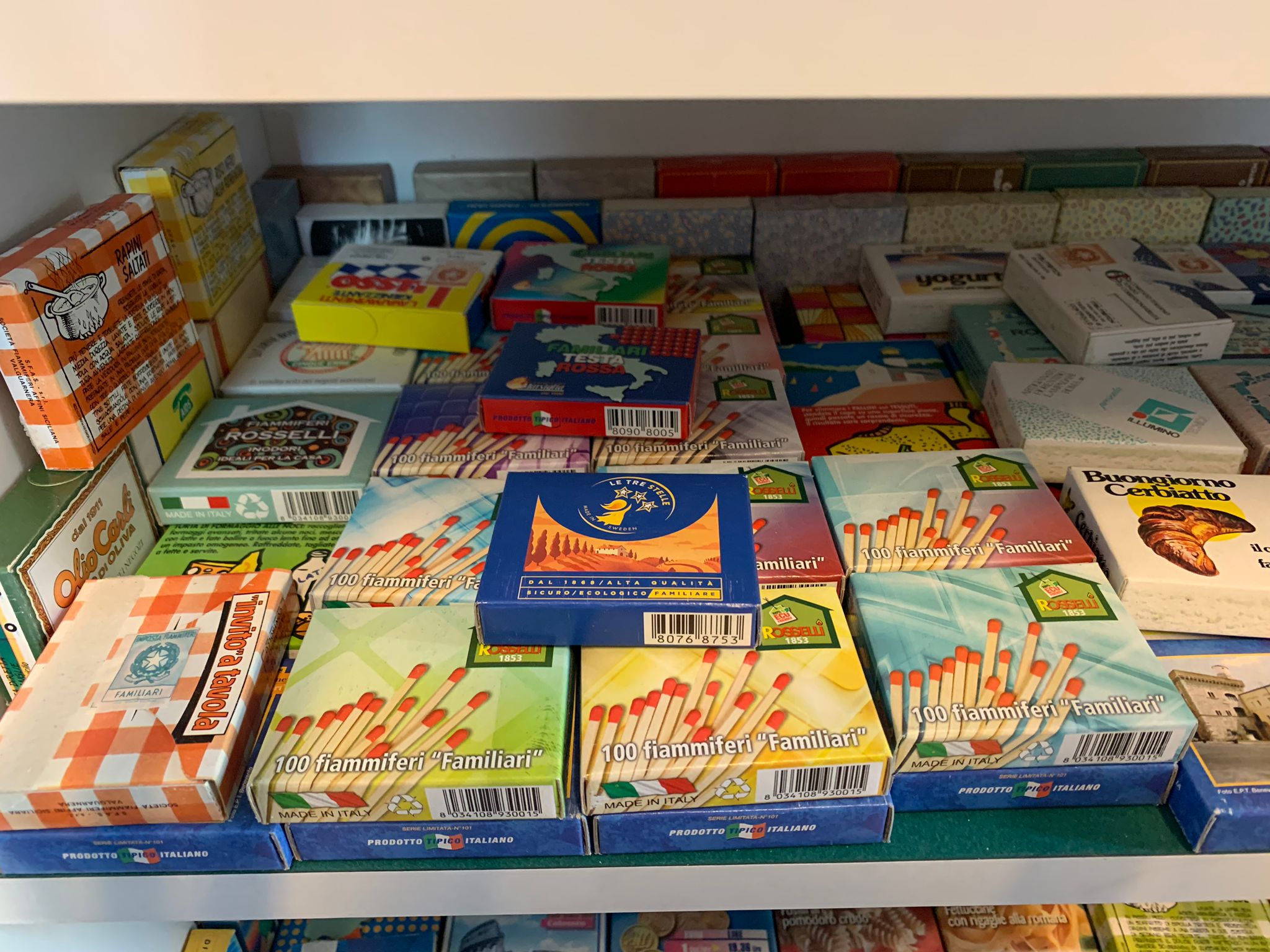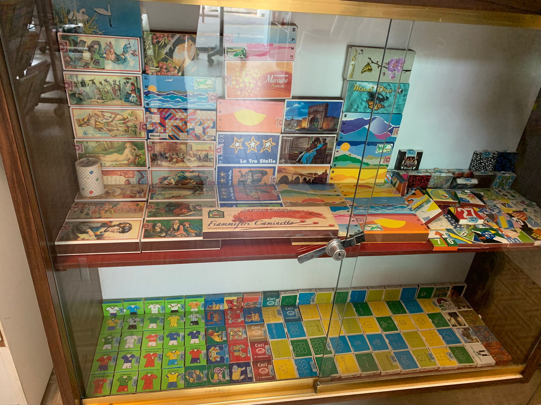 Una rara collezione di scatole di fiammiferi, realizzate per commemorare eventi storici particolari, racconta la storia di anni passati, quando ancora il fiammifero era il mezzo più diffuso per accendere il tabacco o le sigarette. Una storia confermata anche dall’arredamento del negozio, il bancone e le rifiniture in legno, tipiche degli anni ’70. All’interno sono ancora conservate le scatole di latta che contenevano le caramelle e un'antica bilancina, un tempo utilizzata per determinare il peso e il valore dei francobolli da apporre sulla busta.