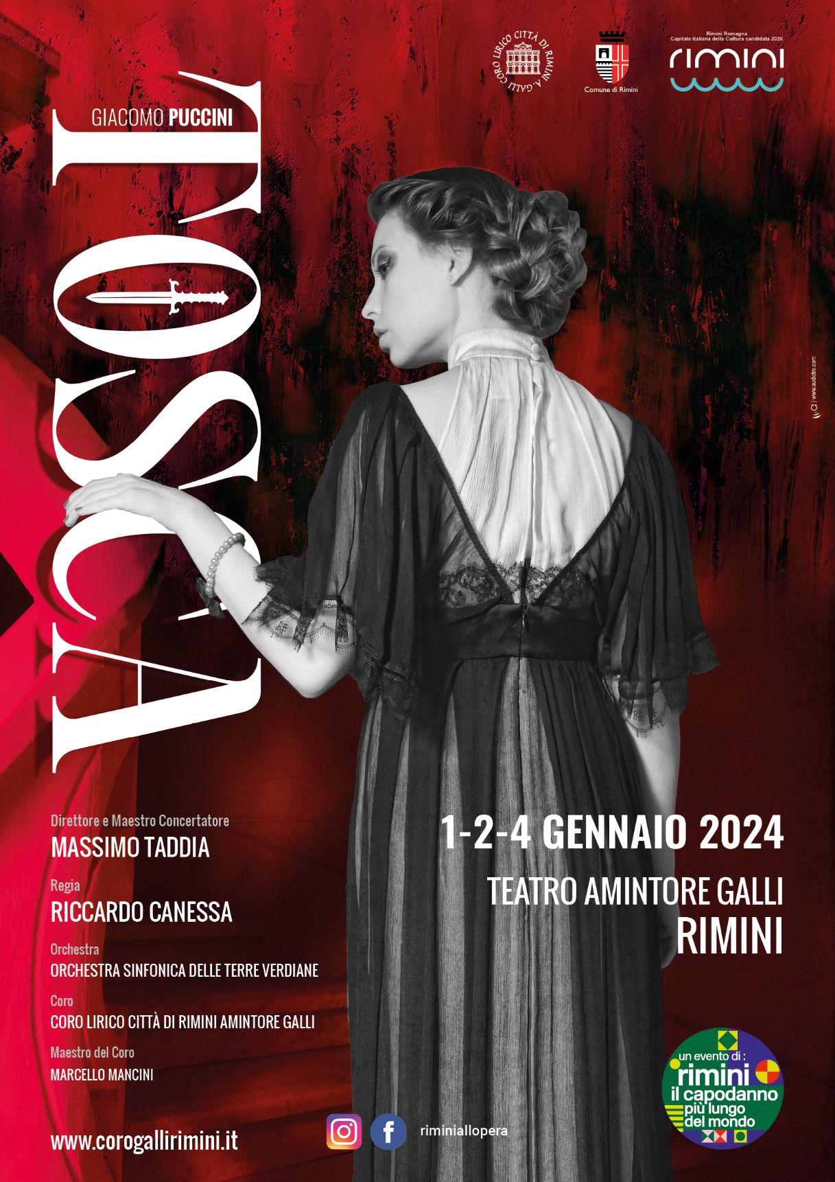 Nell’ambito degli eventi di “Rimini, il capodanno più lungo del mondo”, lunedì primo gennaio alle ore 17:30 al Teatro Amintore Galli va in scena la tradizionale Opera di Capodanno. Tosca, melodramma in tre atti di Giacomo Puccini, su libretto di Giuseppe Giacosa e Luigi Illica tratto dal dramma ‘La Tosca’ di Victorien Sardou, rappresentata per la prima volta a Roma nel 1900, è il titolo scelto quest’anno per inaugurare il 2024, in replica martedì 2 gennaio e giovedì 4 gennaio alle ore 20:30.
