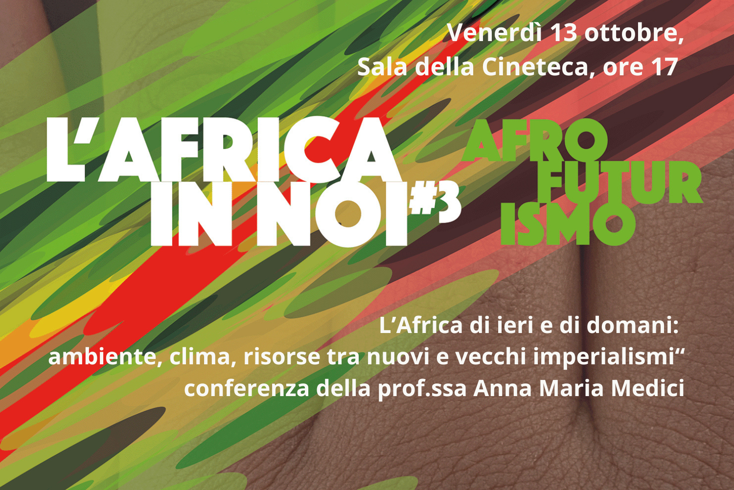 Si terrà nella sala della Cineteca comunale il secondo appuntamento di Afrofuturismo, terza edizione della rassegna L’Africa in noi, promossa dall’associazione Vite in Transito e dalla Biblioteca Gambalunga in collaborazione con Cinema Teatro Tiberio e Istituto per la storia della Resistenza e dell’età contemporanea della Provincia di Rimini e con il patrocinio del Comune di Rimini. La rassegna, ispirata ai temi del dialogo interculturale, tratta il tema delle migrazioni e dell’avvicinamento tra culture attraverso l'uso di diversi linguaggi espressivi, dalla musica al cinema, dalla ricerca accademica alla letteratura.