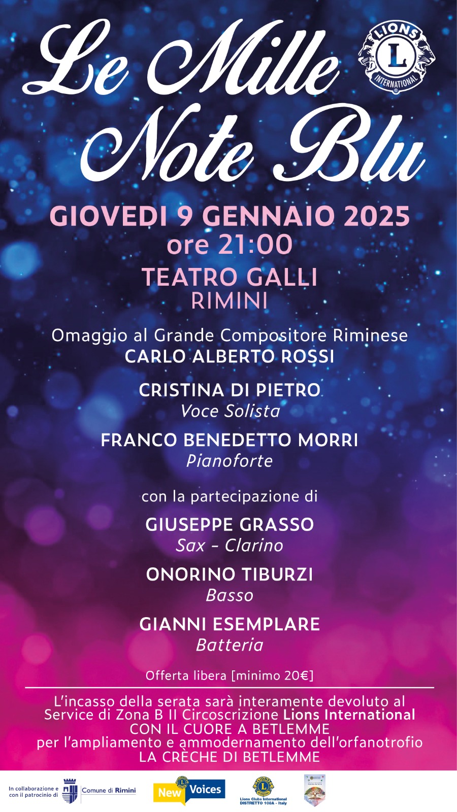Un’occasione non solo per lo scambio di auguri, ma anche per rinnovare l’invito a tutta la cittadinanza a partecipare al concerto “Le Mille Note Blu”, che si terrà giovedì 9 gennaio alle ore 21 al Teatro Galli. Uno spettacolo musicale dedicato al famoso compositore riminese Carlo Alberto Rossi e ai suoi indimenticabili successi internazionali.