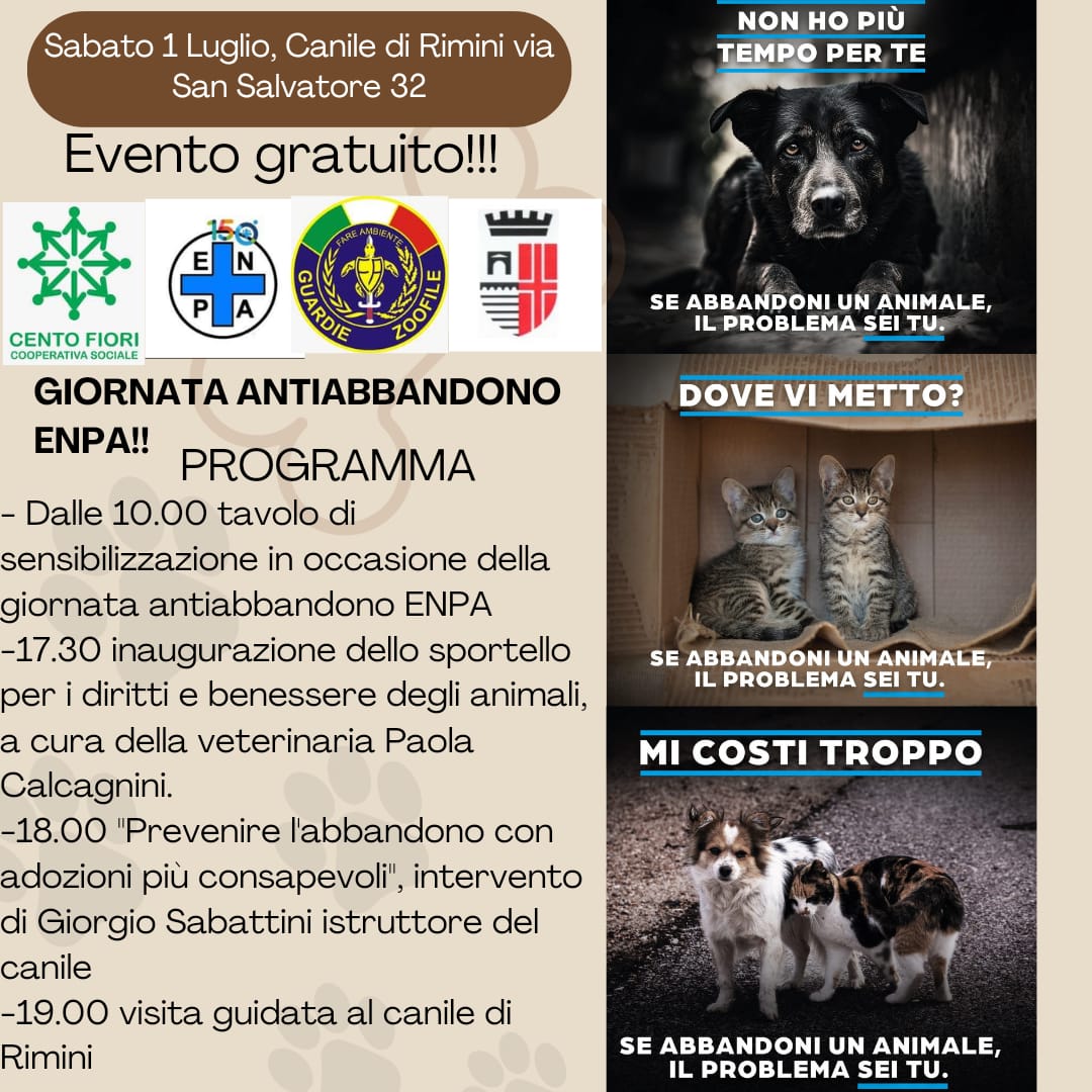 Un tema che sarà al centro anche della ‘Giornata anti-abbandono Enpa’ in programma questo sabato (1° luglio) presso il canile di San Salvatore. Un incontro aperto alla cittadinanza e agli amanti degli amici a quattro promosso dalla Cooperativa Cento Fiori in collaborazione con la sezione provinciale Enpa Rimini, le guardie Fare Ambiente e il Comune di Rimini per sensibilizzare i partecipanti sugli abbandoni e sulle adozioni consapevoli.