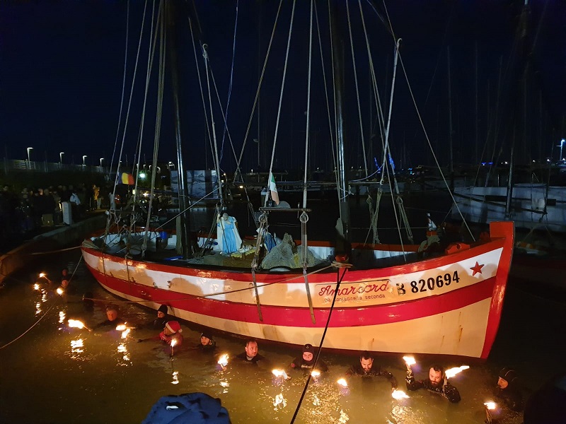 Ad accogliere i visitatori del museo delle Conchiglie e della Marineria, il tradizionale Presepe Marinaro, con la Natività allestita su una battana, la tipica barca dal fondo piatto dei pescatori locali.