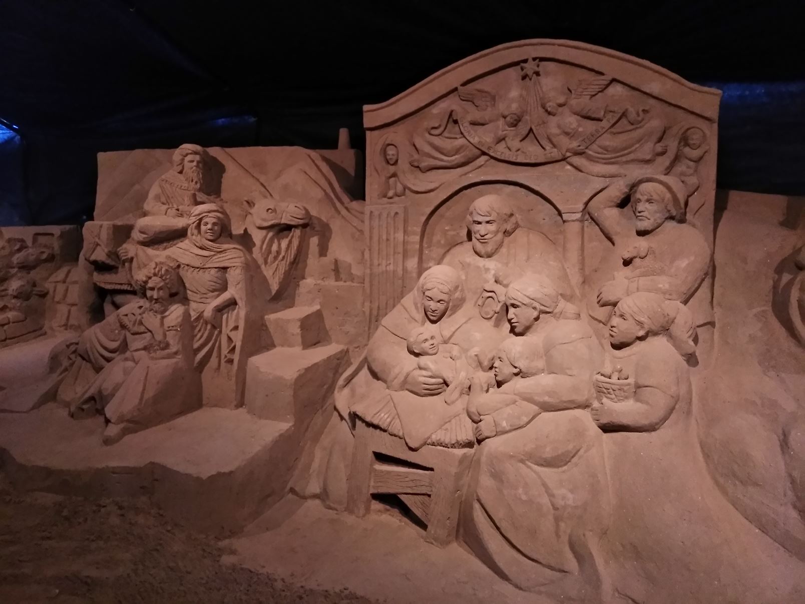 Sulla spiaggia di Torre Pedrera torna il tradizionale Presepe di sabbia che rappresenta una Natività classica in un’ambientazione tipicamente marinara, realizzata interamente con sabbia e acqua, all’interno di una struttura coperta (10mt x 4mt).