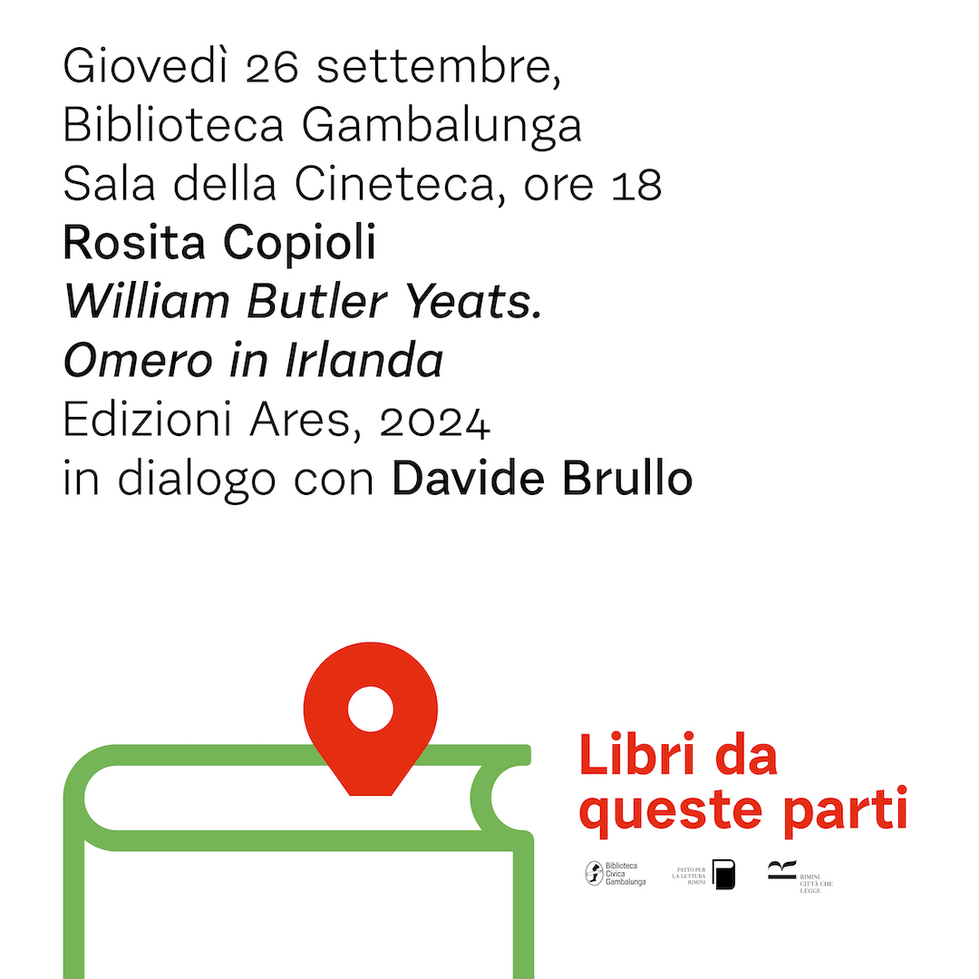 Si comincia dalla letteratura e dalla poesia europea, con un saggio importante su William Yeats, figura centrale nel canone della poesia del Novecento, un saggio che è al tempo stesso un bilancio di quarant’anni di studi appassionati e ricerche, “a metà fra un romanzo di formazione (auto)biografica e un acuto esercizio di critica letteraria”. Così, infatti, Massimo Morasso ha definito l’ultima opera della poetessa e studiosa Rosita CopioliWilliam Butler Yeats. Omero in Irlanda", edito da Ares nel 2024.