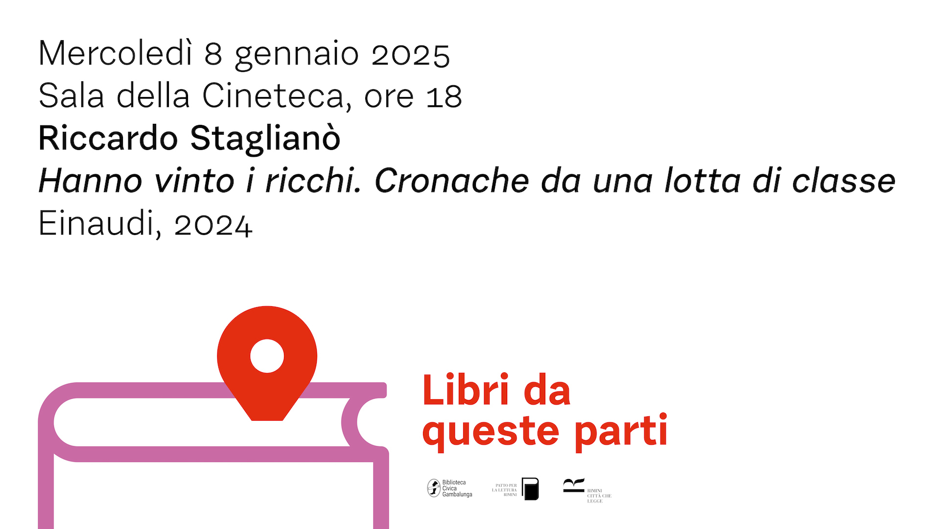 La Biblioteca Gambalunga apre il calendario 2025 della sua rassegna di incontri con gli scrittori con una presenza speciale. Riccardo Staglianò, scrittore e giornalista, corrispondente per il quotidiano La Repubblica e firma del Venerdì, presenta il suo ultimo libro dedicato ai drammatici disequilibri dell'economia contemporanea con una formula del tutto particolare. A partire dal libro “Hanno vinto i ricchi. Cronache da una lotta di classe” pubblicato da Einaudi a fine settembre 2024, l'autore, solo, sul palco della Cineteca comunale con grandi immagini alle sue spalle, mette in fila le tante ragioni che hanno portato al più triste record italiano. Ovvero: siamo l'unico Paese in cui, dal 1990 al 2020, i salari medi sono andati indietro. Com'è stato possibile? Con tanti dati e un bel po' di ironia, un viaggio alle radici della disuguaglianza. Con una domanda finale: perché nessuno si arrabbia?