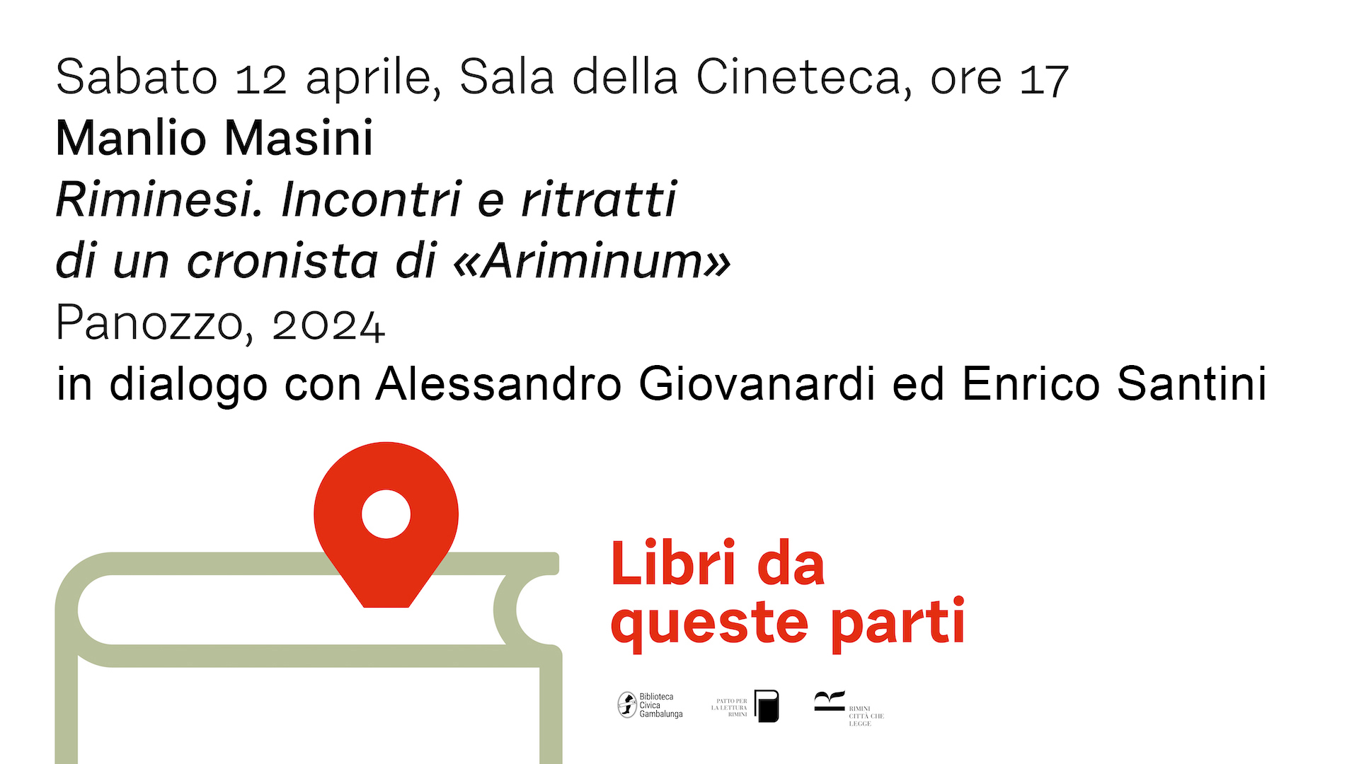 Figura storica del giornalismo riminese, Manlio Masini ha dedicato la sua carriera a raccontare la città attraverso i suoi protagonisti. Per oltre venticinque anni, alla guida della rivista "Ariminum", ha tracciato con passione e rigore il ritratto di uomini e donne che hanno contribuito a plasmare l’identità di Rimini. Ora, con il suo nuovo libro Riminesi. Incontri e ritratti di un cronista di ‘Ariminum’" (Panozzo, 2024), Masini raccoglie e amplia quei racconti, restituendo una visione autentica e profonda della città e della sua storia. Nell’appuntamento di sabato 12 aprile della rassegna LIBRI DA QUESTE PARTI l’autore presenterà il volume in dialogo con il saggista e storico dell'arte Alessandro Giovanardi e con “il filosofo rurale”, come si autodefinisce, Enrico Santini alle ore 17, presso la Sala della Cineteca della Biblioteca Gambalunga.