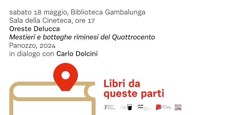 L’appuntamento di sabato 18 maggio alle ore 17 nella Sala della Cineteca con l’edizione speciale per il Maggio dei Libri della rassegna di Libri da queste parti ci conduce nella Rimini del XV secolo, una città ancora pre-industriale di circa 10.000 abitanti. Oreste Delucca, in dialogo con il medievista Carlo Dolcini, presenta la sua nuova opera Mestieri e botteghe riminesi del Quattrocento (Panozzo 2024) in cui riesce a donare anima agli archivi cittadini, riconnettendo i dati raccolti in un gradevolissimo racconto e ricostruendo in maniera analitica il quadro socio-economico cittadino. Il risultato è uno straordinario affresco dell'operosa realtà riminese dell'epoca e, allo stesso tempo, un'opera imprescindibile per qualunque studio successivo sulla Romagna del XV secolo.
