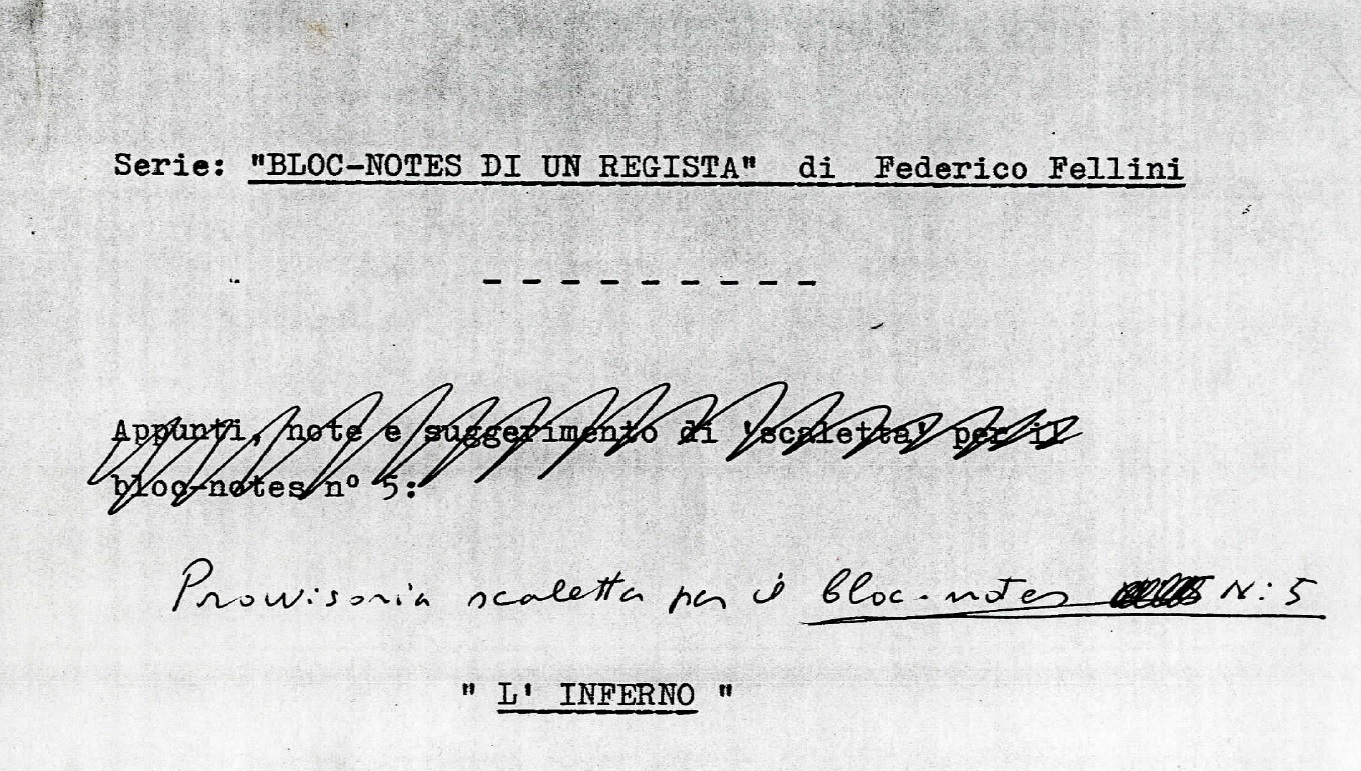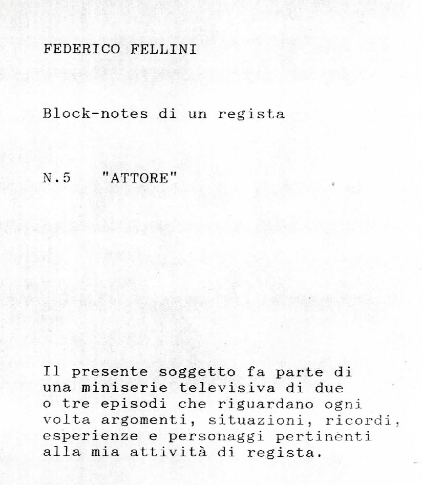 Negli ultimi anni della sua vita si sa che Federico Fellini lavorò principalmente su due progetti: uno era una sorta di block-notes sul mestiere dell'attore, di cui resta qualche disegno e qualche appunto (all. 2 e 3), e che si pensa possa essere lo sviluppo di un’idea degli anni Settanta su Alighiero Noschese. L’altro era la ripresa di un vecchio proposito, Venezia, dedicato al fascino e alla dimensione onirica della città e che, insieme a Mastorna, rappresenta la sua ossessione.