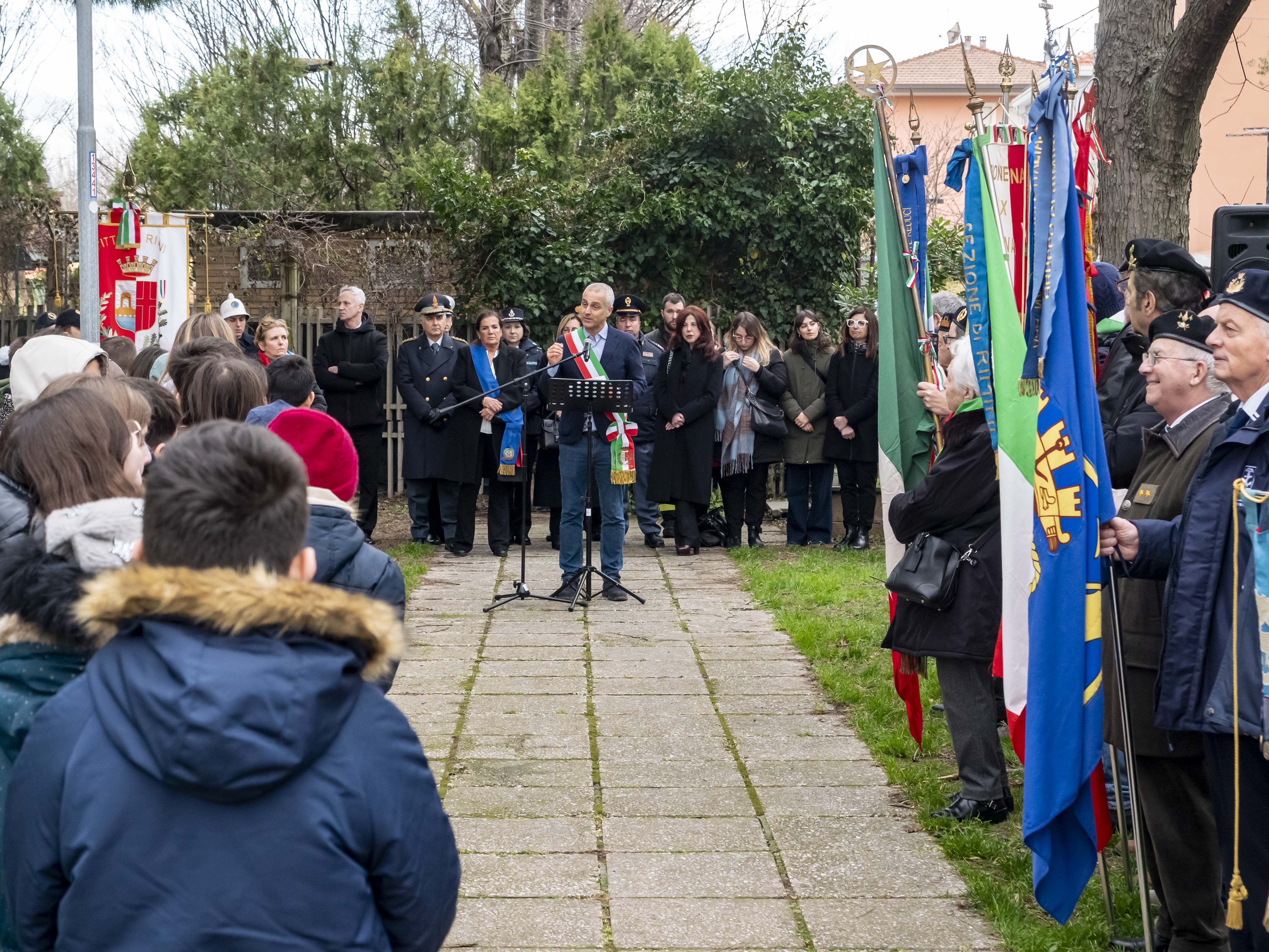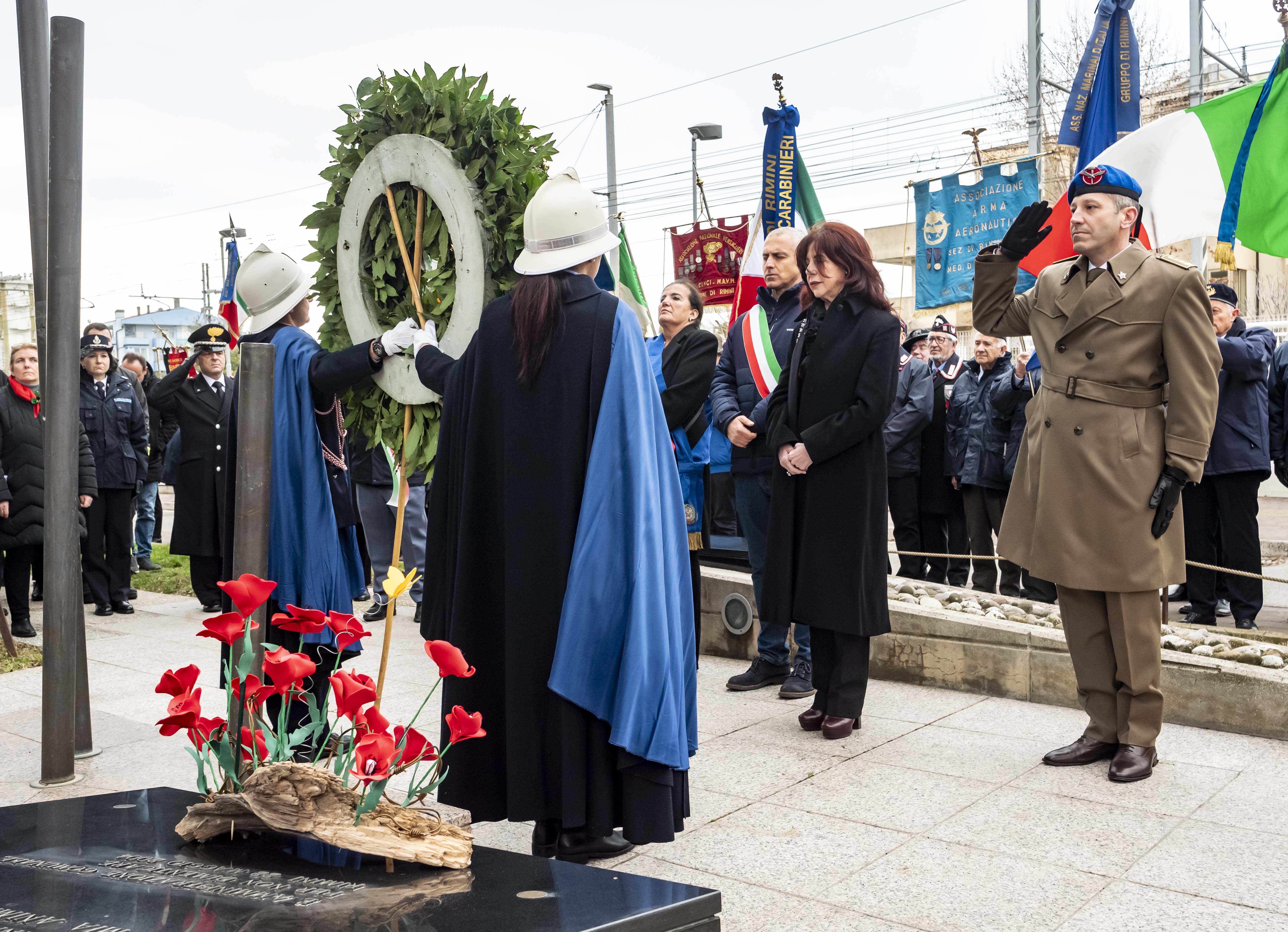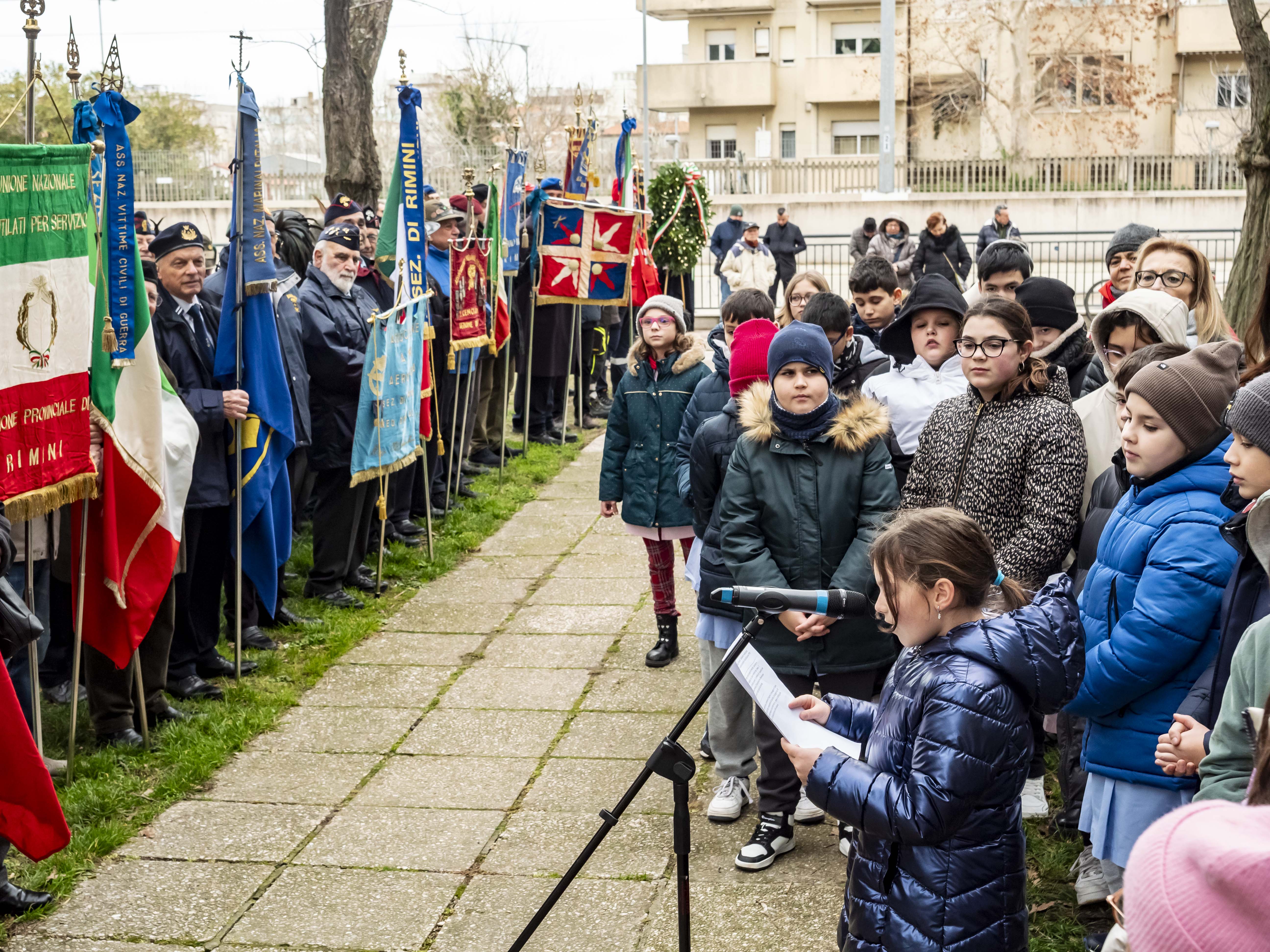 Alla cerimonia hanno partecipato il Sindaco di Rimini, Jamil Sadegholvaad, Patrizia Tamburini, vicepresidente dell'A.N.E.I. (Associazione Nazionale Ex-Militari Internati), rappresentanti delle istituzioni civili e militari e delle associazioni combattentistiche e d'arma con le loro insegne.