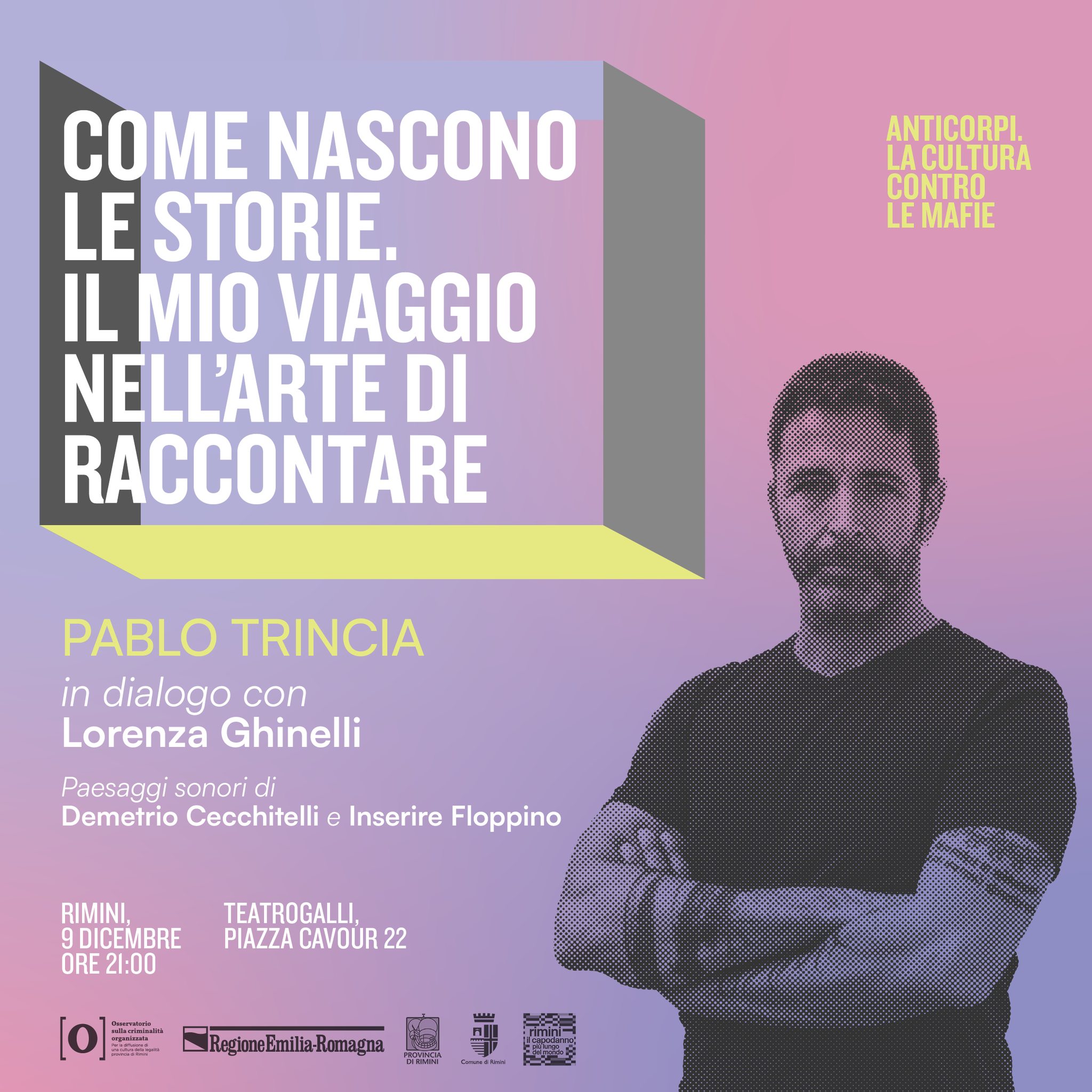 Lunedì 9 dicembre una serata di storie, suoni e narrazione al Teatro Galli di Rimini con Pablo Trincia per il Festival Anticorpi