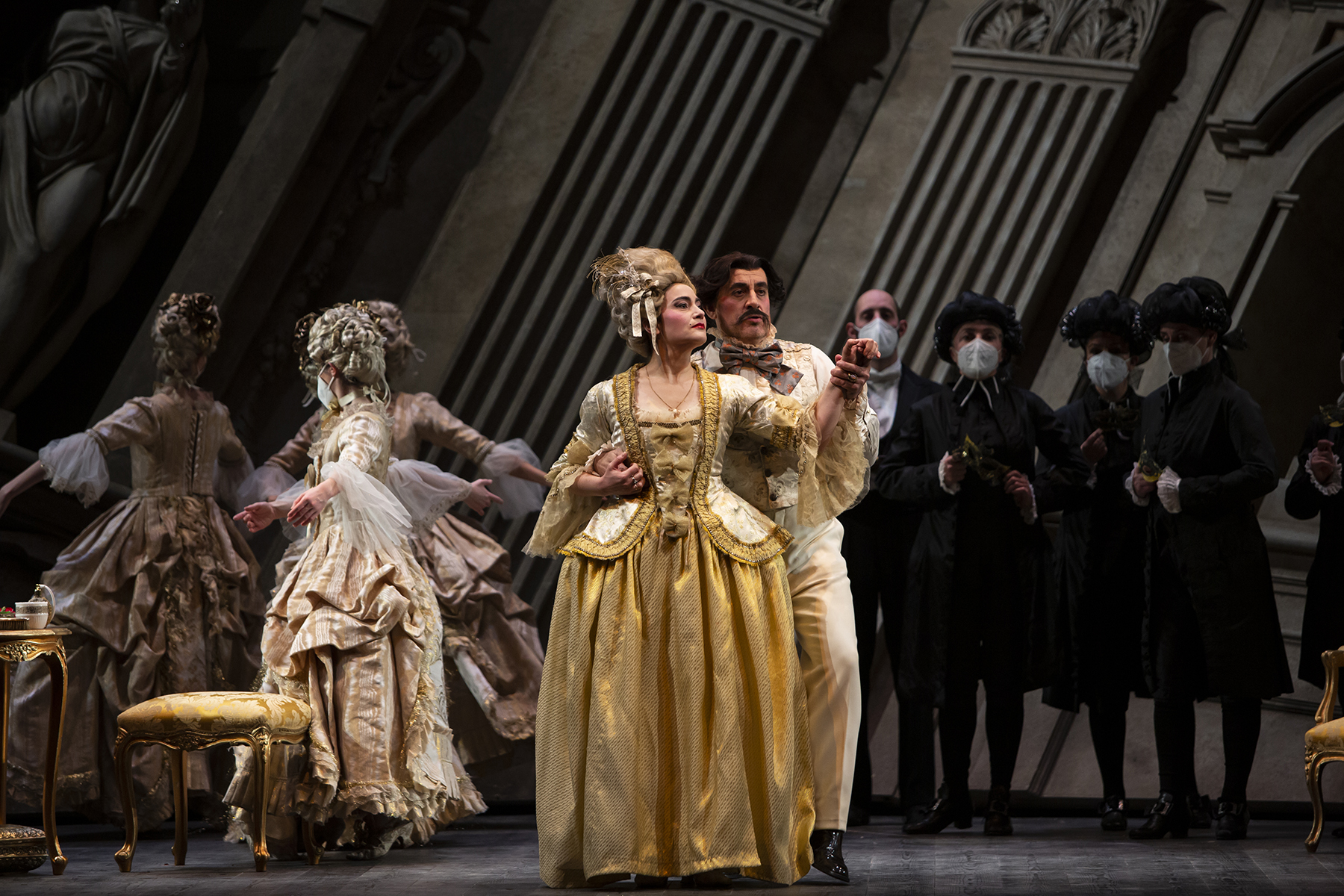 “Ho pensato che questa storia – racconta il regista Aldo Tarabella - potesse sopravvivere oltre il tempo, come se fosse stata incisa sulle mura del palazzo per poi essere raccontata in un altro tempo, agli inizi del Novecento, rendendola così ancor più vicina a noi, durante un inizio d’anno a Parigi. Insieme allo scenografo Giuliano Spinelli abbiamo creato un allestimento che, alla fine dei nostri studi e incontri, è divenuto un unico elemento poetico che potesse dialogare con la storia di Manon: un palazzo monumentale che, al pari dei sogni e delle ambizioni della protagonista dell’opera, subirà crolli e mutazioni, dal giocoso esterno del palazzo di posta del primo atto agli interni maestosi del salone di Geronte al desolante molo del porto, sino alla sua definitiva metamorfosi nell’ultimo atto”.