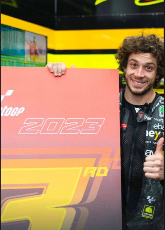 Il terzo premiato è Marco Bezzecchi, il pilota della VR46 sulla sua Ducati 2022 ha vinto la sua prima gara in motogp in Argentina, chiudendo il campionato MotoGP al terzo posto.