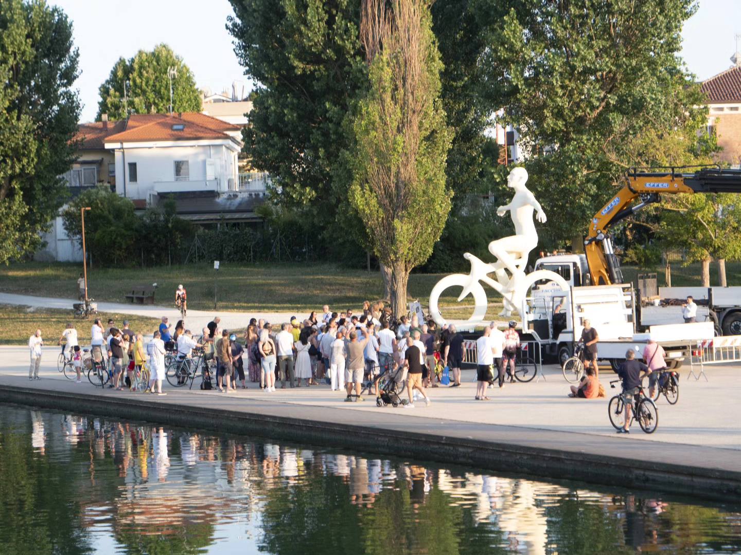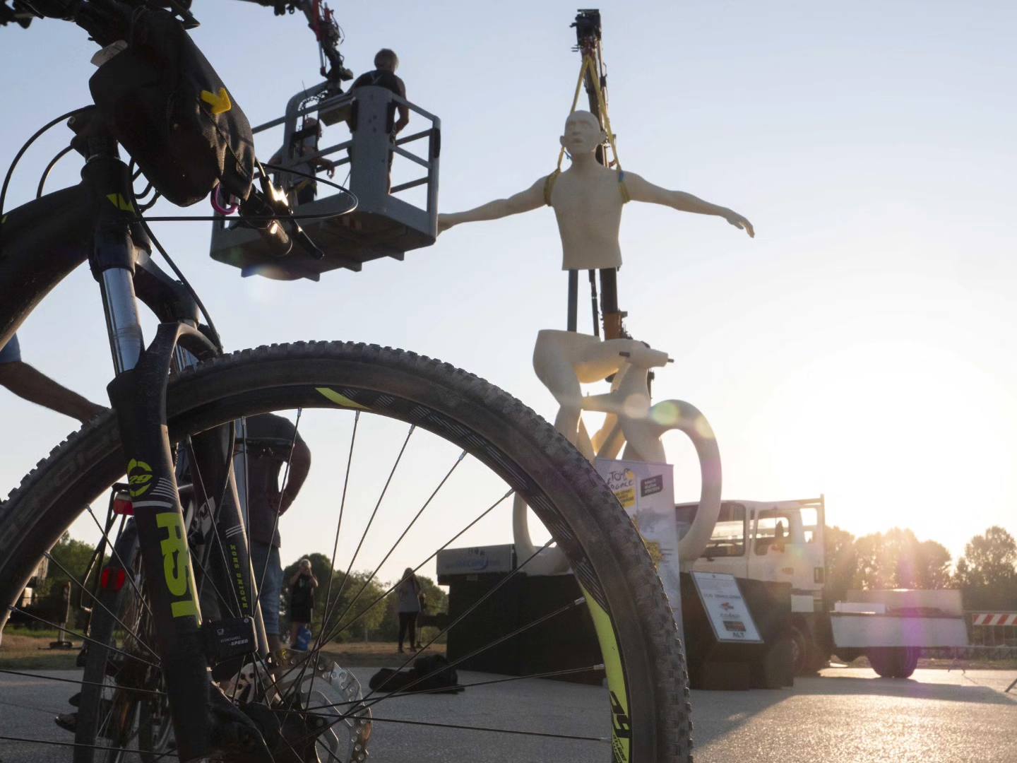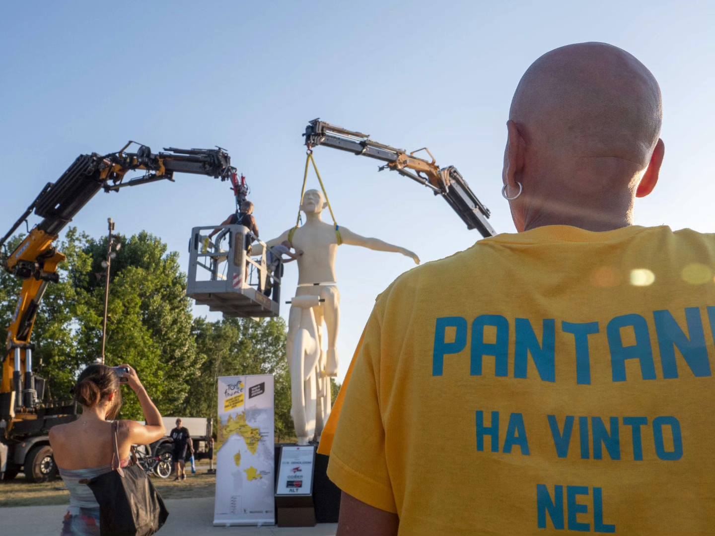 L'omaggio, una installazione alta 5 metri e larga 4, fissa per sempre la silhouette di Pantani al termine di una delle sue più celebri cavalcate nel mito: l'arrivo al traguardo di Oropa alla corsa rosa nel 1999, pochi giorni prima che tutto andasse in frantumi a Madonna di Campiglio. Marco con le braccia larghe, dopo aver rimontato 49 avversari a causa di un incidente meccanico, in una espressione di gioia, fatica, estasi e dolore.