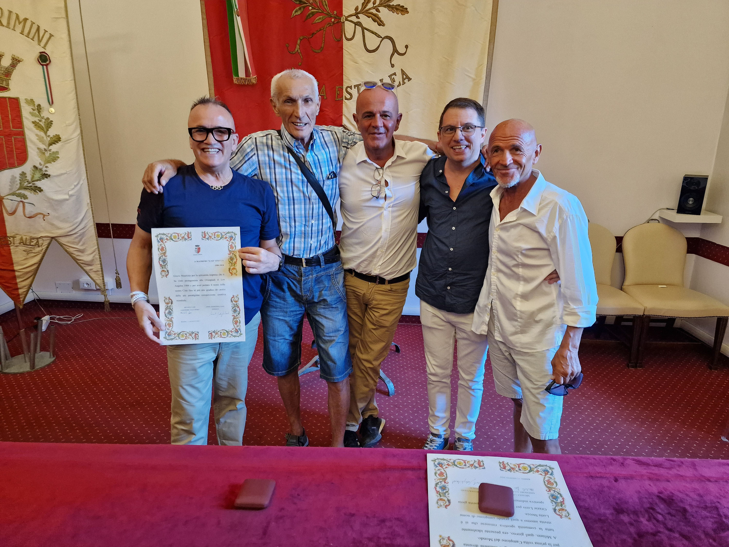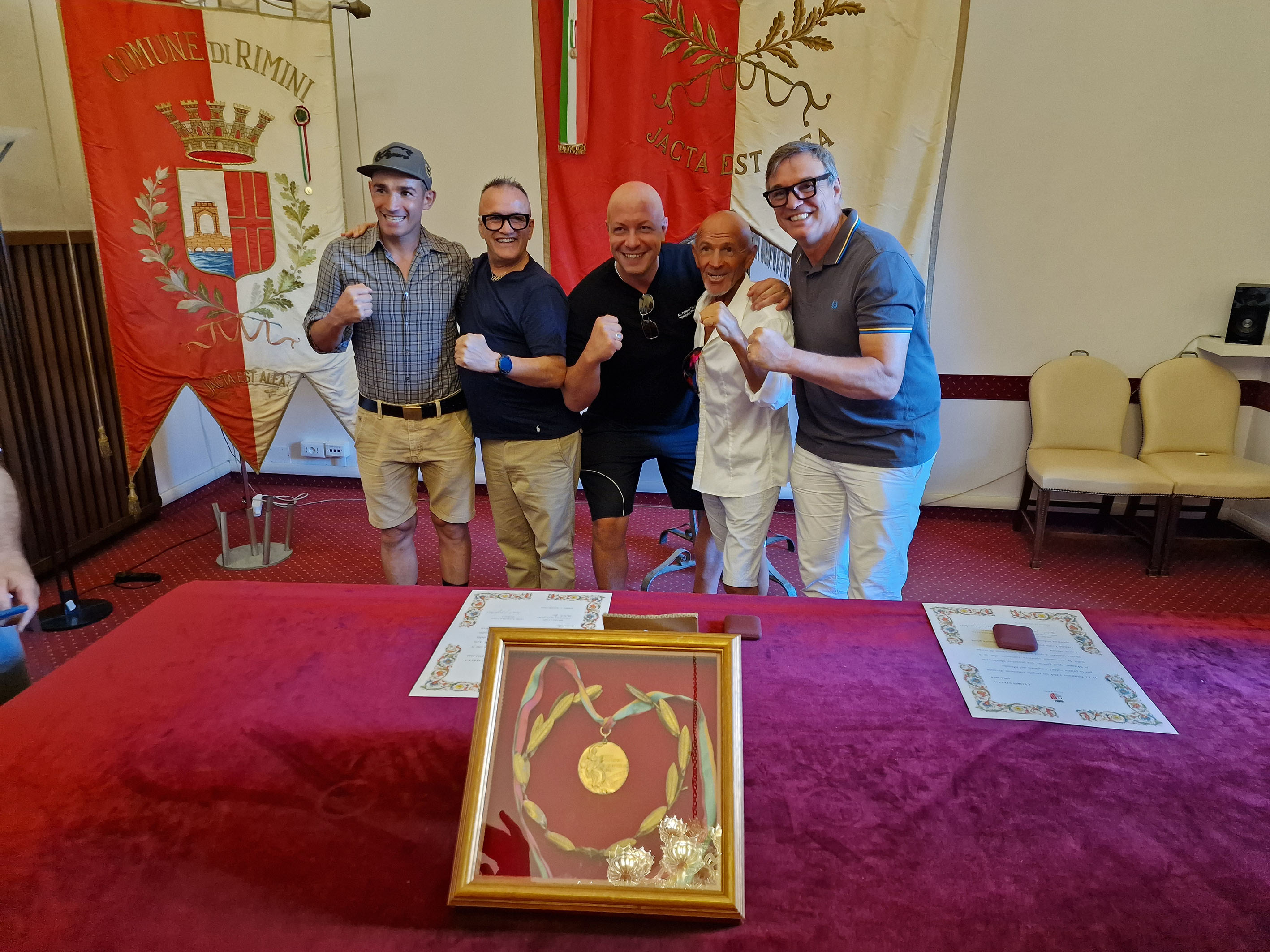 Erano tutti lì questa mattina i 'fratelli della Libertas', come loro stessi si definiscono, nella sala della Giunta comunale ad assistere alla premiazione che il sindaco Jamil Sadegholvaad e l’assessore allo Sport Michele Lari, hanno voluto fare ai due fratelli Stecca, i due campioni riminesi, dopo 40 anni dai loro straordinari traguardi nel mondo del pugilato.