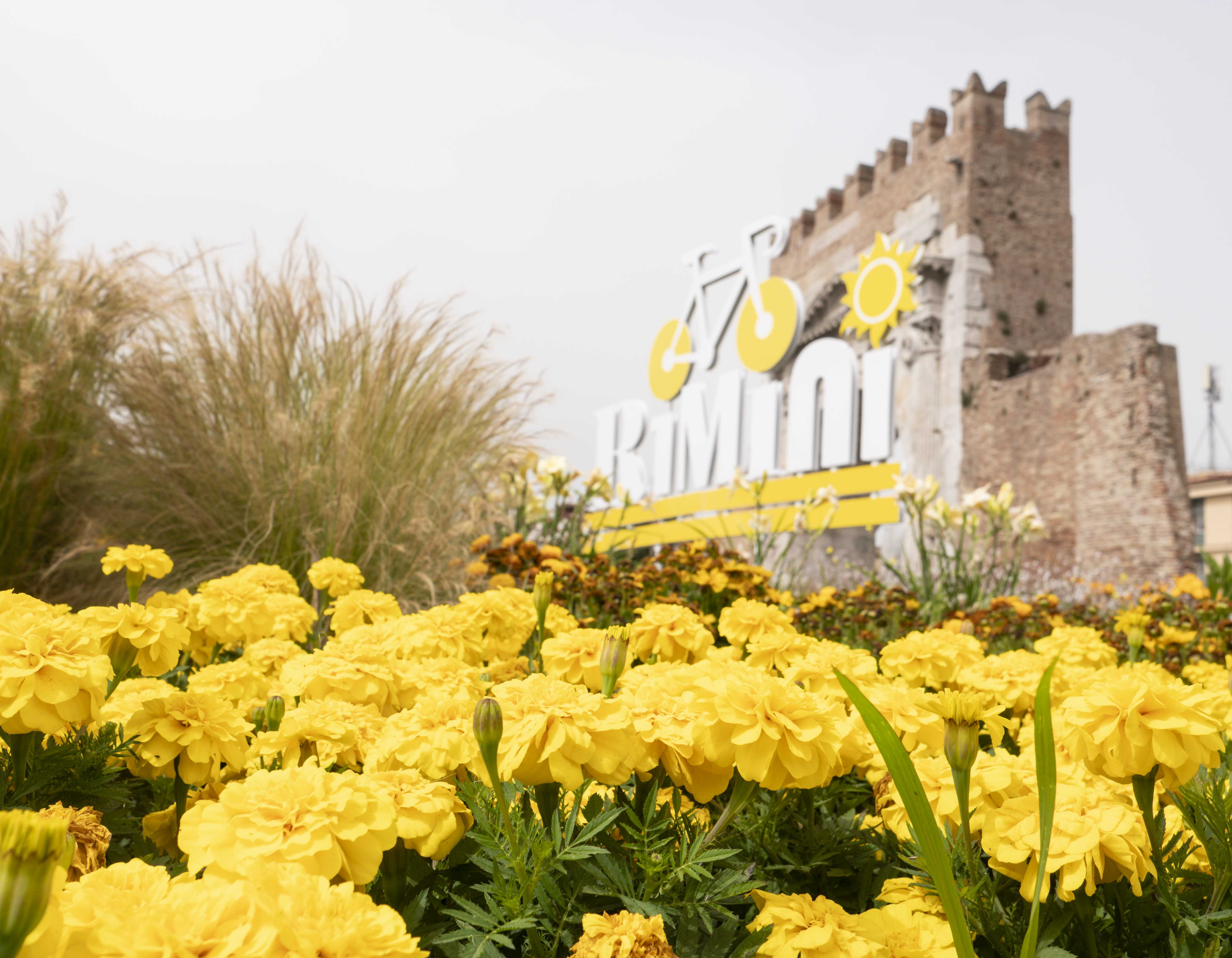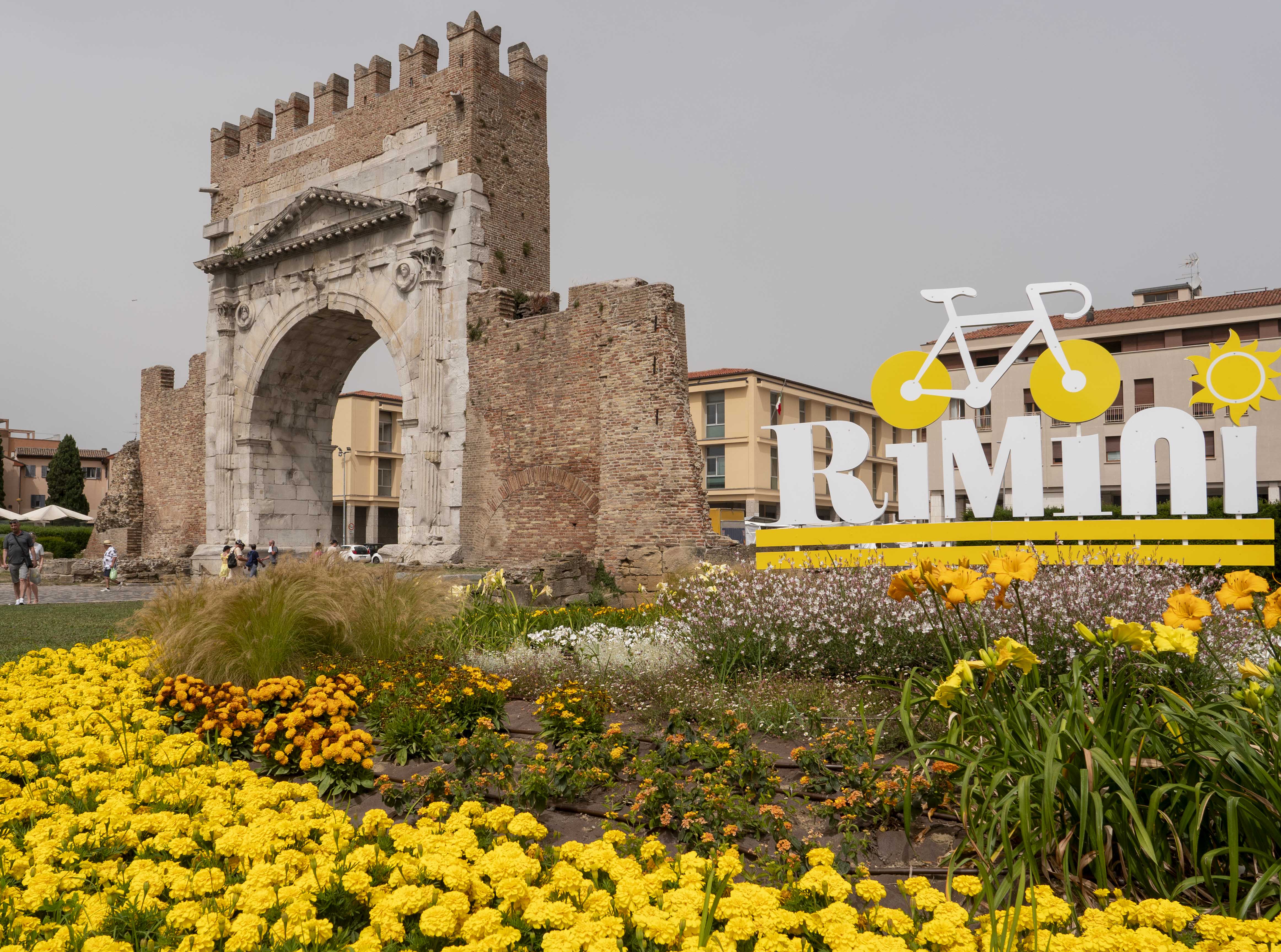 Rimini per l’arrivo del Tour de France si è vestita di giallo: la grande scritta che campeggia al porto (36 metri per 8), la struttura tridimensionale dedicata al Tour in piazzale Fellini e davanti alla porta storica di ingresso della città circondata da decine di fiori gialli all’arco d’Augusto, il totem con il countdown in piazza Cavour e nella zona dell’arrivo. Tutte le strade interessate dalla corsa sono state asfaltate nei tratti di tracciato bisognosi di manutenzione e nei prossimi giorni arriveranno altre due grandi sorprese.