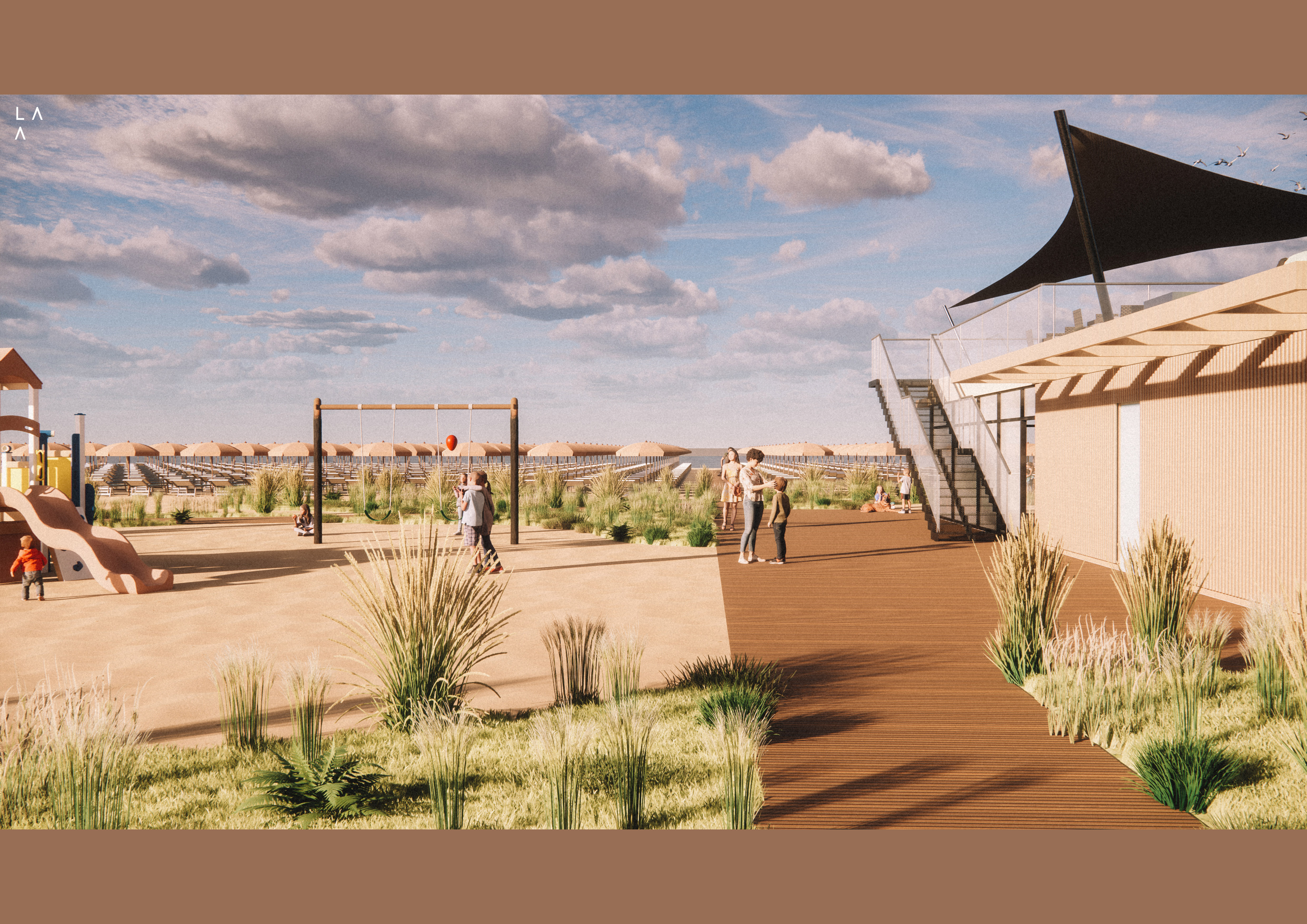 Il progetto, curato dallo studio di architettura Landi, comprenderà lo sviluppo anche un’importante area verde che si estenderà tra gli spazi per i clienti e gli ombrelloni, creando un filtro tra le due fasce. Tutti i percorsi pedonali saranno realizzati in legno, dall’accesso alla spiaggia, fino alle passerelle che conducono a riva. Elementi, dunque, che saranno coordinati con le linee architettoniche e le scelte che contraddistinguono il nuovo Parco del Mare nord.