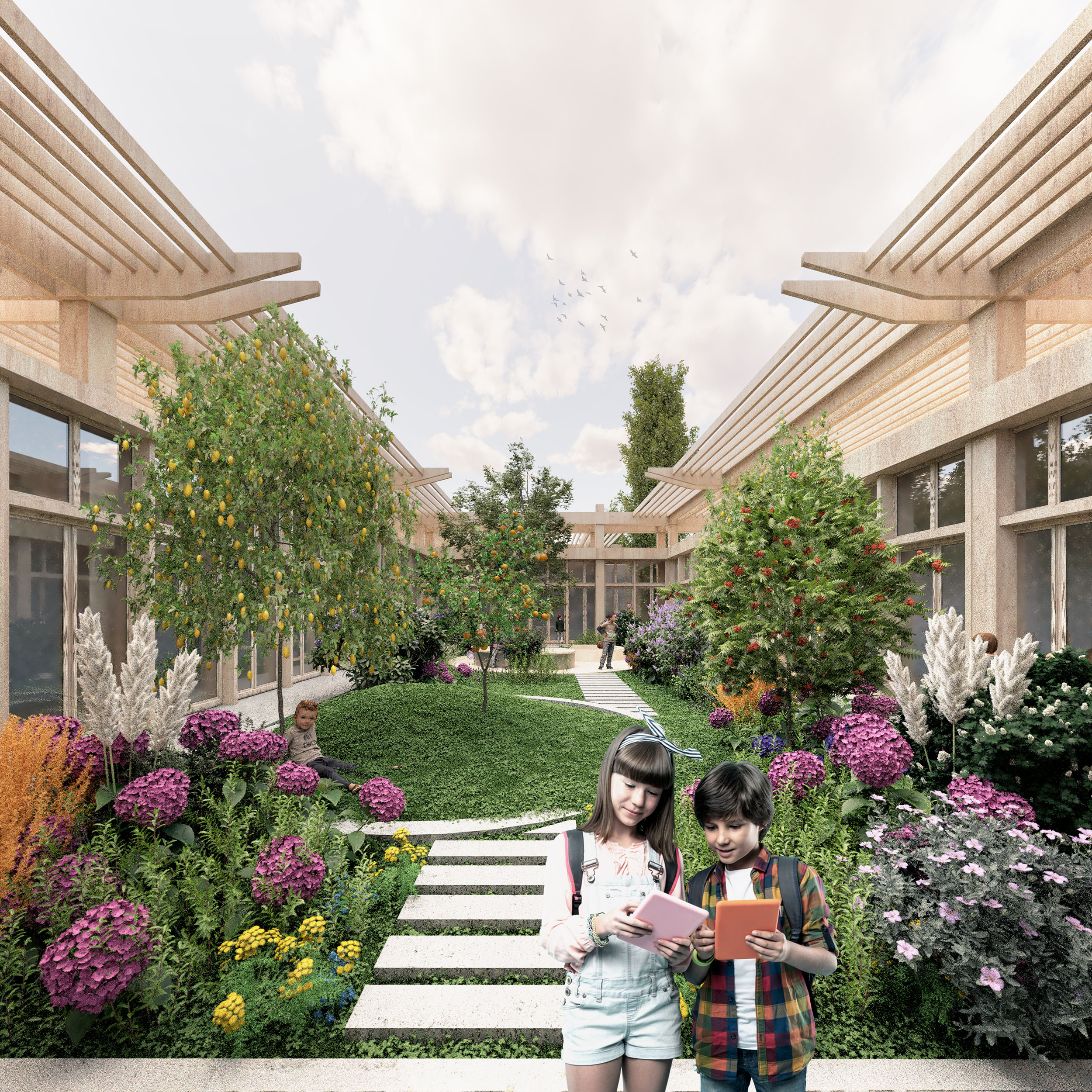 Lo studio guidato dall’architetto Marco Tanzili si è classificato al primo posto del concorso, sulla base di un punteggio assegnato da una commissione multi professionale composta da rappresentanti sia delle professioni tecniche sia di quelle educative. Ai progettisti è stato chiesto di immaginare una scuola dove nella stessa struttura fossero compresenti aree a diversa vocazione, flessibili e multifunzionali, adattabili a molteplici utilizzi nel corso della giornata o delle stagioni, con spazi esterni dedicati all’outdoor education, pensati per essere assegnati in gestione ad associazioni ed enti, nella prospettiva di una scuola che diventi uno spazio di riferimento per chi vive nel quartiere.