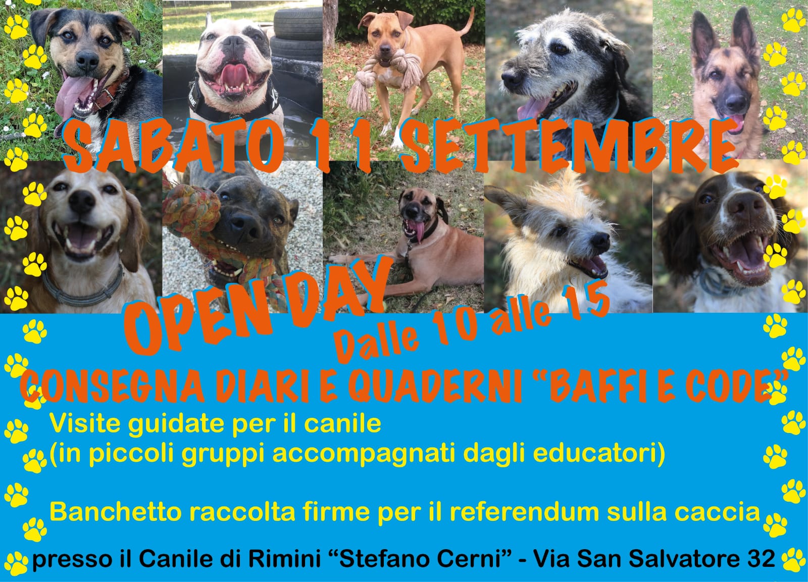 • Open day del canile “Stefano Cerni”: sabato 11 settembre la giornata dedicata alle visite guidate per promuovere le adozioni. Ospite speciale il cane Mario, operato dopo l’incidente con i fondi dell’iniziativa “Baffi e code”