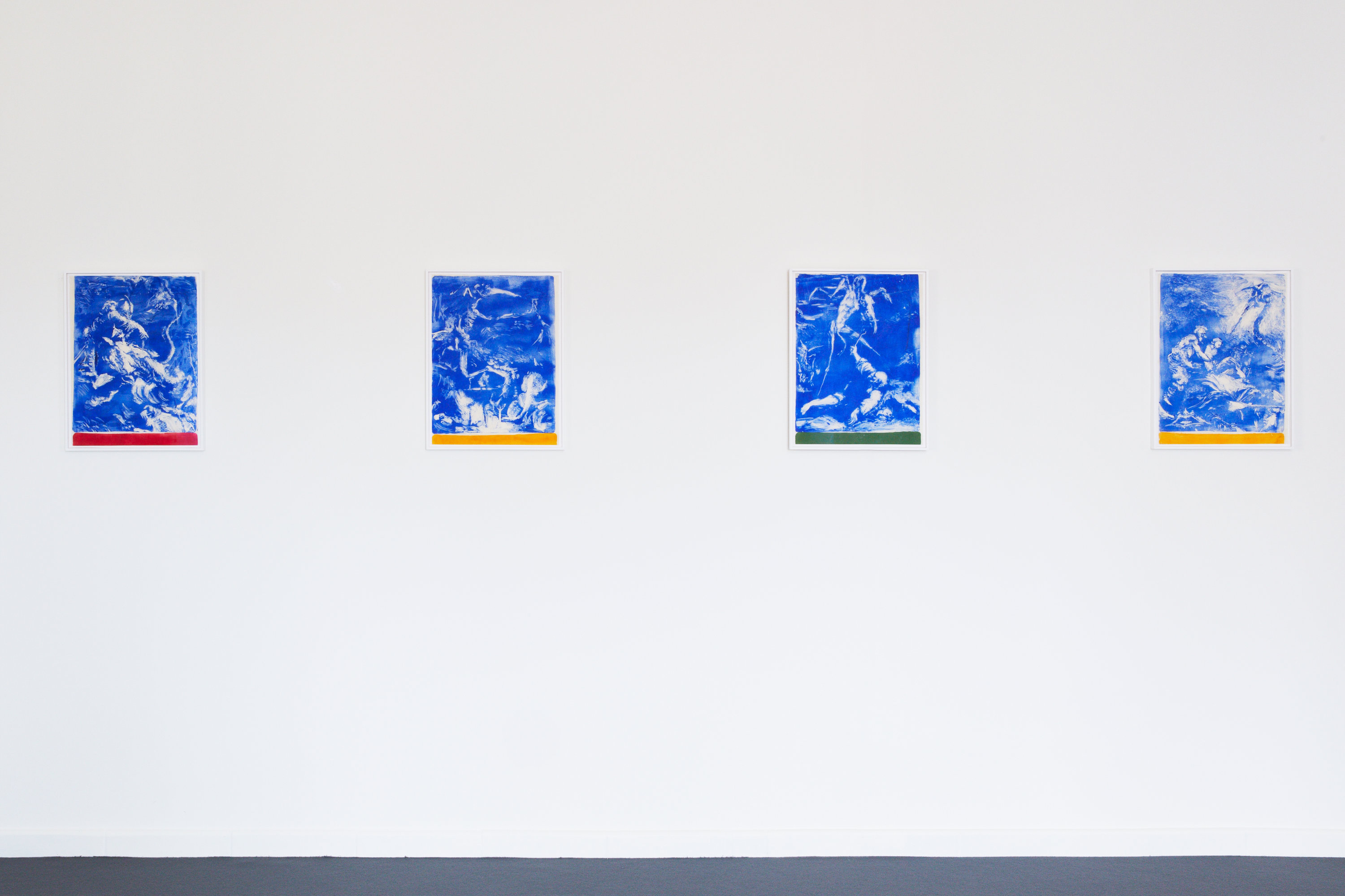 Untitled (light sequence), 2022, 4 Gelli Print Monotypes su carta, 52x62 cm ognuno, Courtesy dell’artista e Galleria Federico Vavassori, Milano