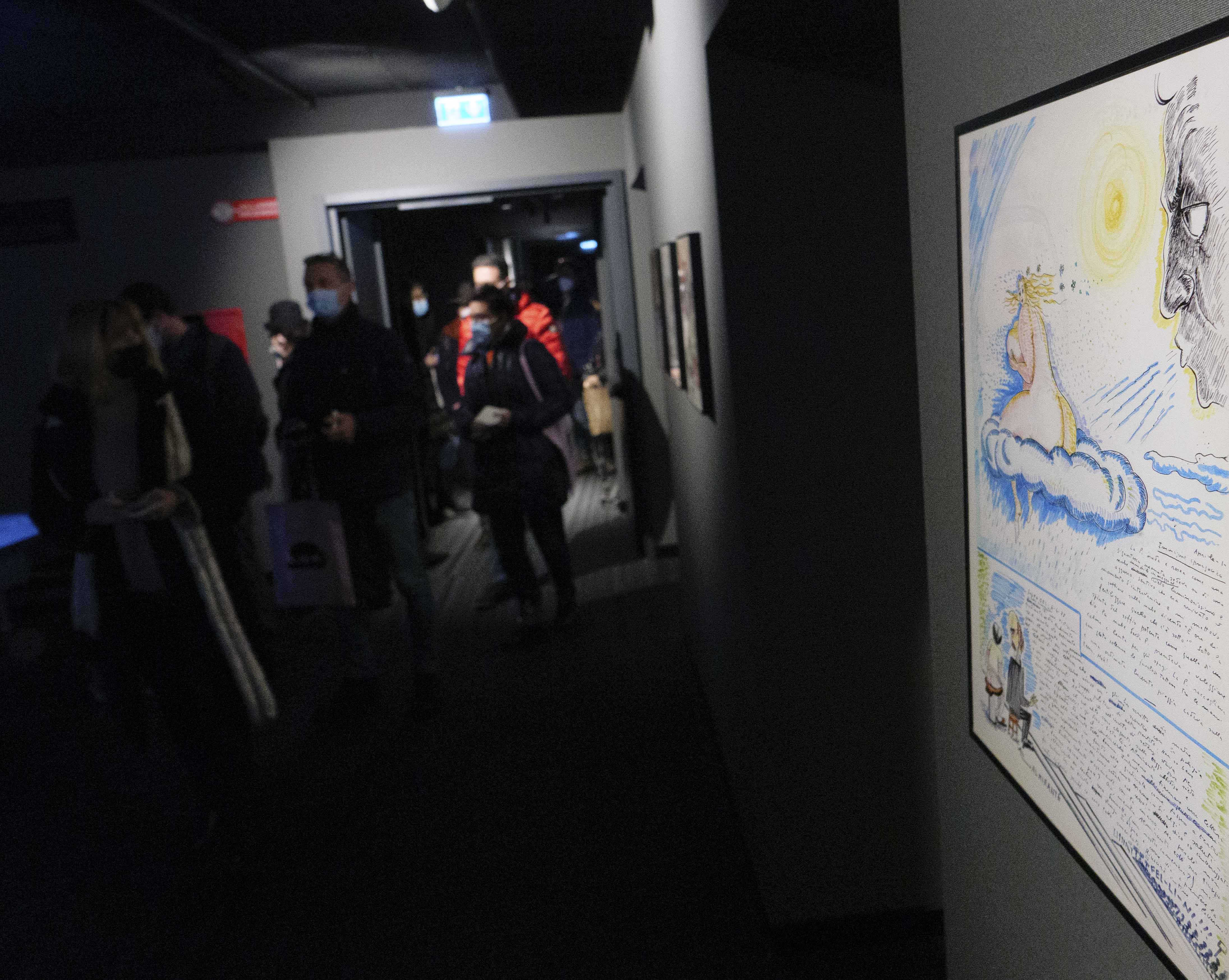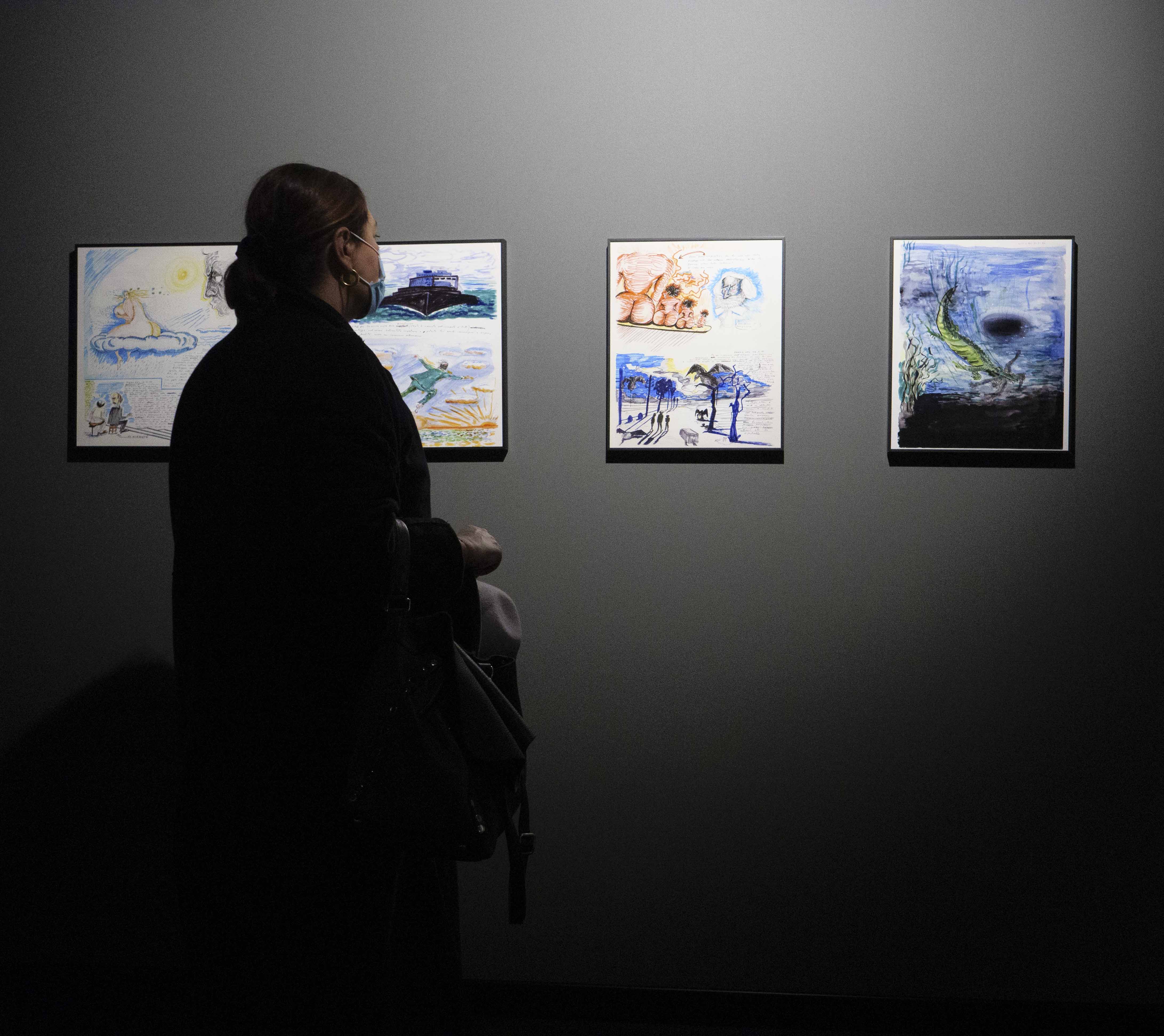 L'immaginario di Fellini vive naturalmente nei suoi film, evocato dai manifesti e dalle locandine originali presenti nella sala al primo piano; ma vive anche nei documenti, testuali e visivi, che parlano delle relazioni, delle fantasie e dei progetti di cui il suo cinema si è nutrito.