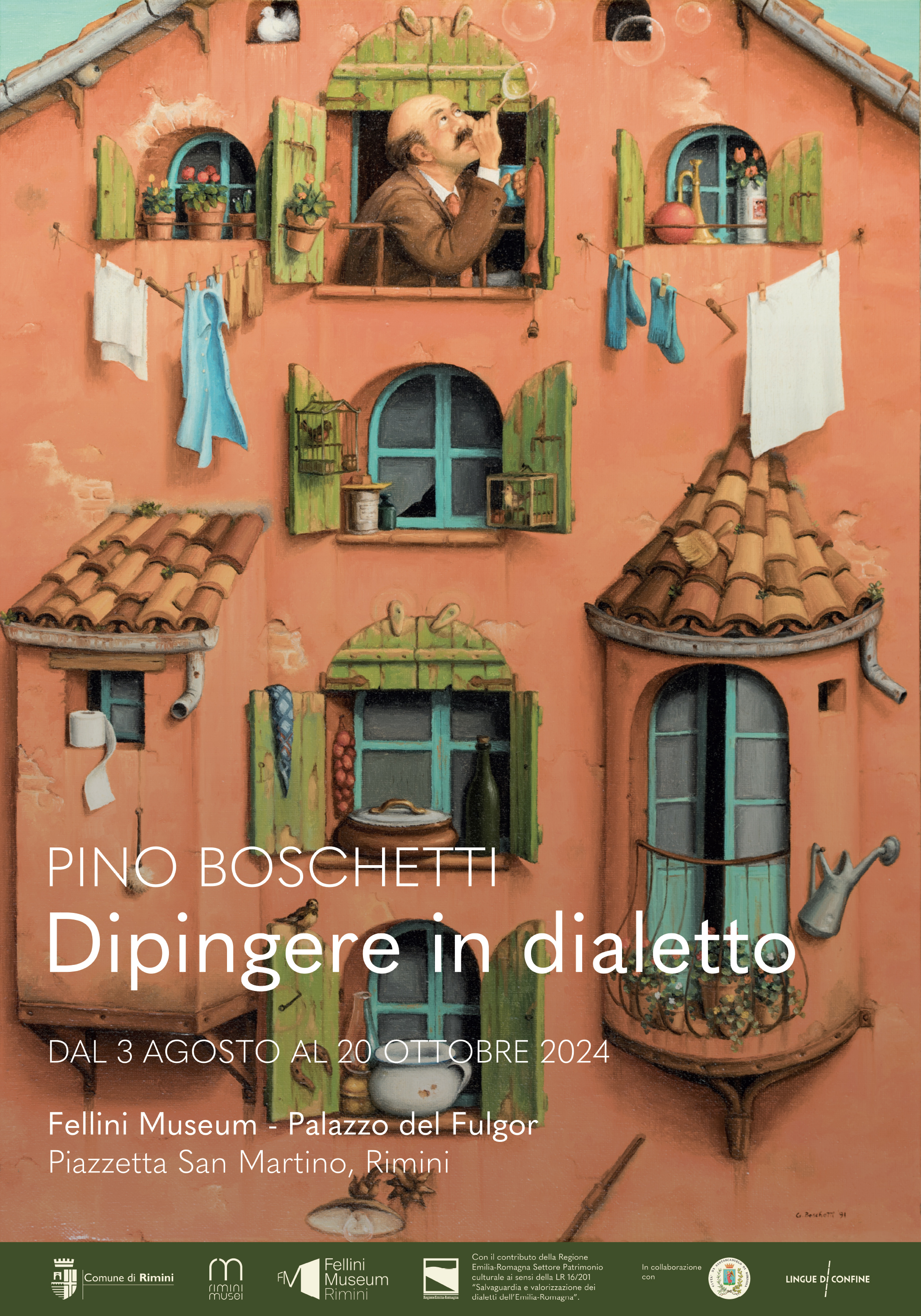 L’esposizione, promossa dai musei del Comune di Rimini, con la collaborazione del Comune di Santarcangelo, si inserisce all'interno del progetto “Lingue di confine” dedicato all’arte in dialetto, che esplora le profonde connessioni tra la lingua madre e le espressioni artistiche attraverso la poesia, il teatro e la pittura. La mostra è visitabile fino al 20 ottobre negli orari di apertura del palazzo del Fulgor (info: fellinimuseum.it/il-museo).