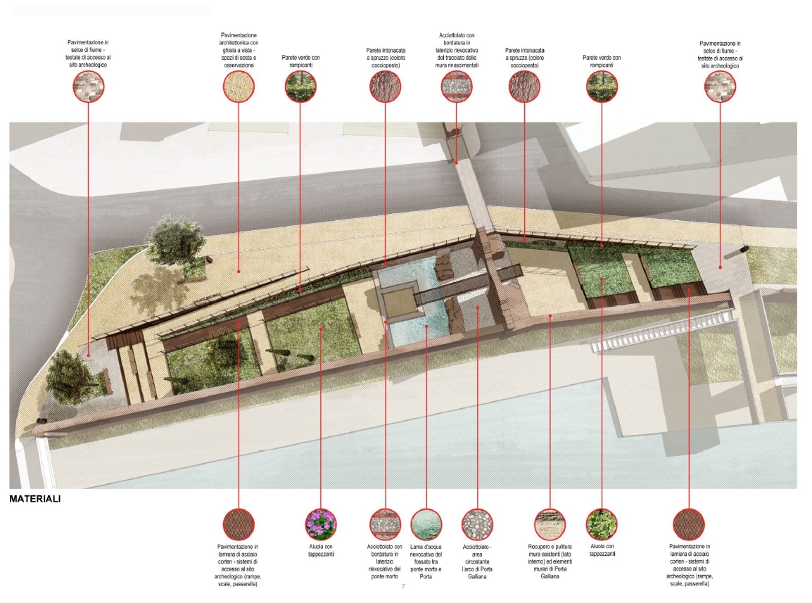 Nel mese di marzo si sono completate le opere di fondazione e gli elementi delle piazzette, pianerottoli e rampe, necessarie per la realizzazione dei percorsi inclinati accessibili al piano medievale della porta. È stata realizzata anche una vasca d’acqua (a sfioro perimetrale) che riproporrà l’antico fossato d’acqua esistente sull’esterno di questo tratto di mura cittadine, esattamente sul sedime originario (epoca presunta tardo 1400/1500).