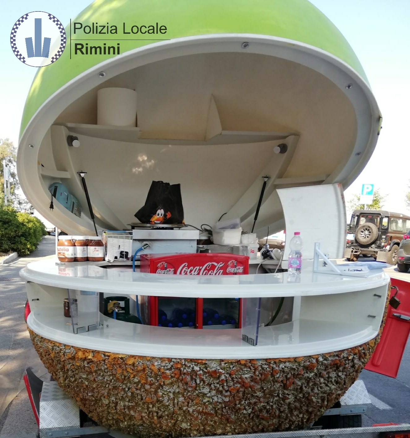 È stato posto sotto sequestro ieri pomeriggio dal personale della Polizia Locale di Rimini un rimorchio utilizzato da un operatore ambulante come chiosco per la preparazione e la vendita di crepes e operativo da giorni a Marina Centro, nella zona di viale Beccadelli a ridosso del Parco del mare. Una posizione di pregio e molto frequentata, ma abusiva in quanto non era rientrava tra i posteggi regolarmente autorizzati e che ha dunque portato il personale della polizia locale a procedere con il sequestro.
