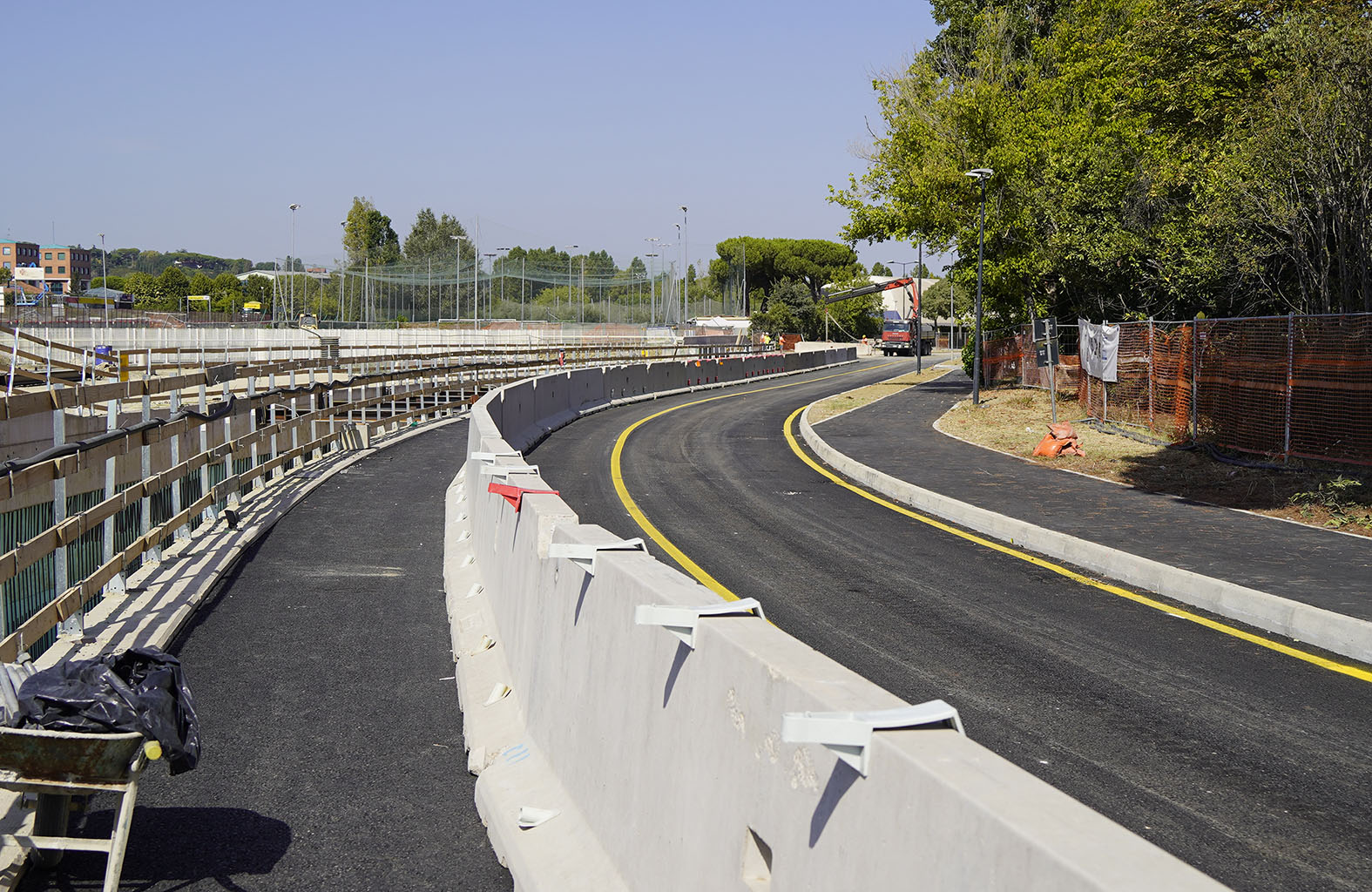 A questa importante opera sono connesse anche le lavorazioni per la realizzazione di un nuovo percorso ciclopedonale, con tre sottopassi che permetteranno il collegamento del quartiere del Villaggio 1° Maggio al parco Giovanni Paolo II (parco La Cava), passando al di sotto della rotatoria e di via Euterpe. Un percorso ciclopedonale, anch’esso in parte già realizzato, che in quarta fase sta procedendo nelle coperture del manto d’asfalto e che si completerà anche con il collegamento con chi proviene dal Garden. Questo intervento ha incluso anche la realizzazione di un nuovo collettore idraulico in sostituzione del vecchio torrente Ausa, con tracciato parallelo alla ciclabile, che prevede la realizzazione dell’attraversamento idraulico, consentendo la continuità monte-mare al torrente.