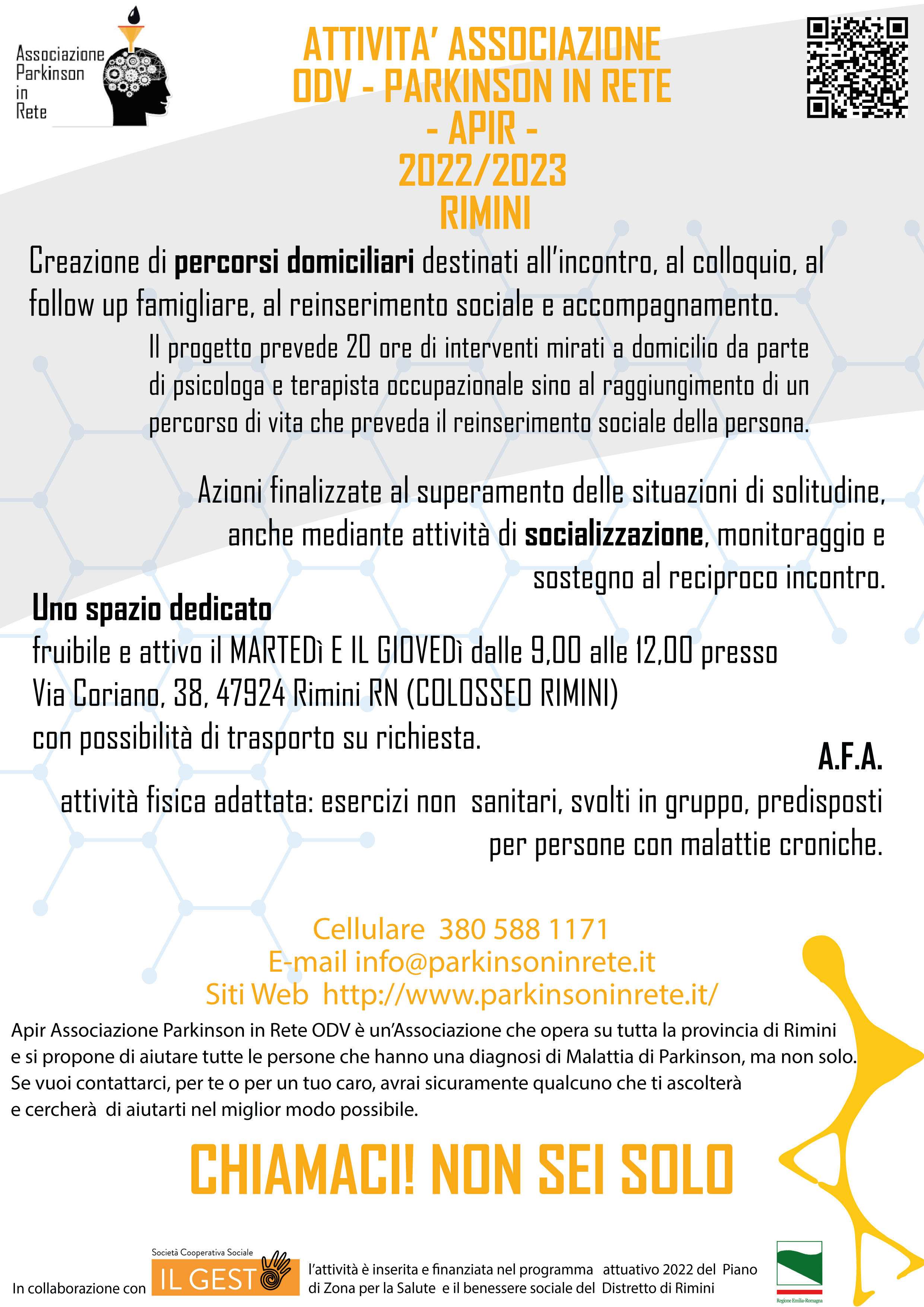 Le iniziative sono realizzate dall’Associazione Parkinson in Rete e dalla Coop Sociale Il Gesto, in collaborazione con Rimini Terme, Anmic, Fand Rimini.