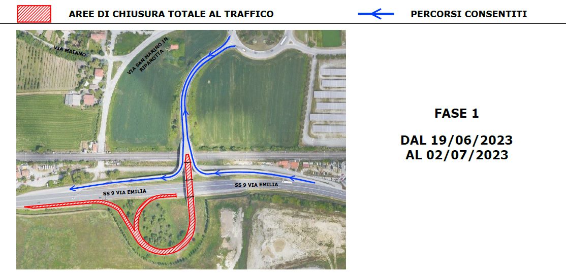 Conseguentemente, i veicoli provenienti da Santarcangelo e diretti a Viserba dovranno proseguire sulla SS 9 ed uscire al successivo svincolo; giunti alla rotatoria della fiera, dovranno invertire il senso di marcia e riprendere la Statale 9 in direzione nord per poi uscire alla successiva rampa che conduce a San Martino in Riparotta.