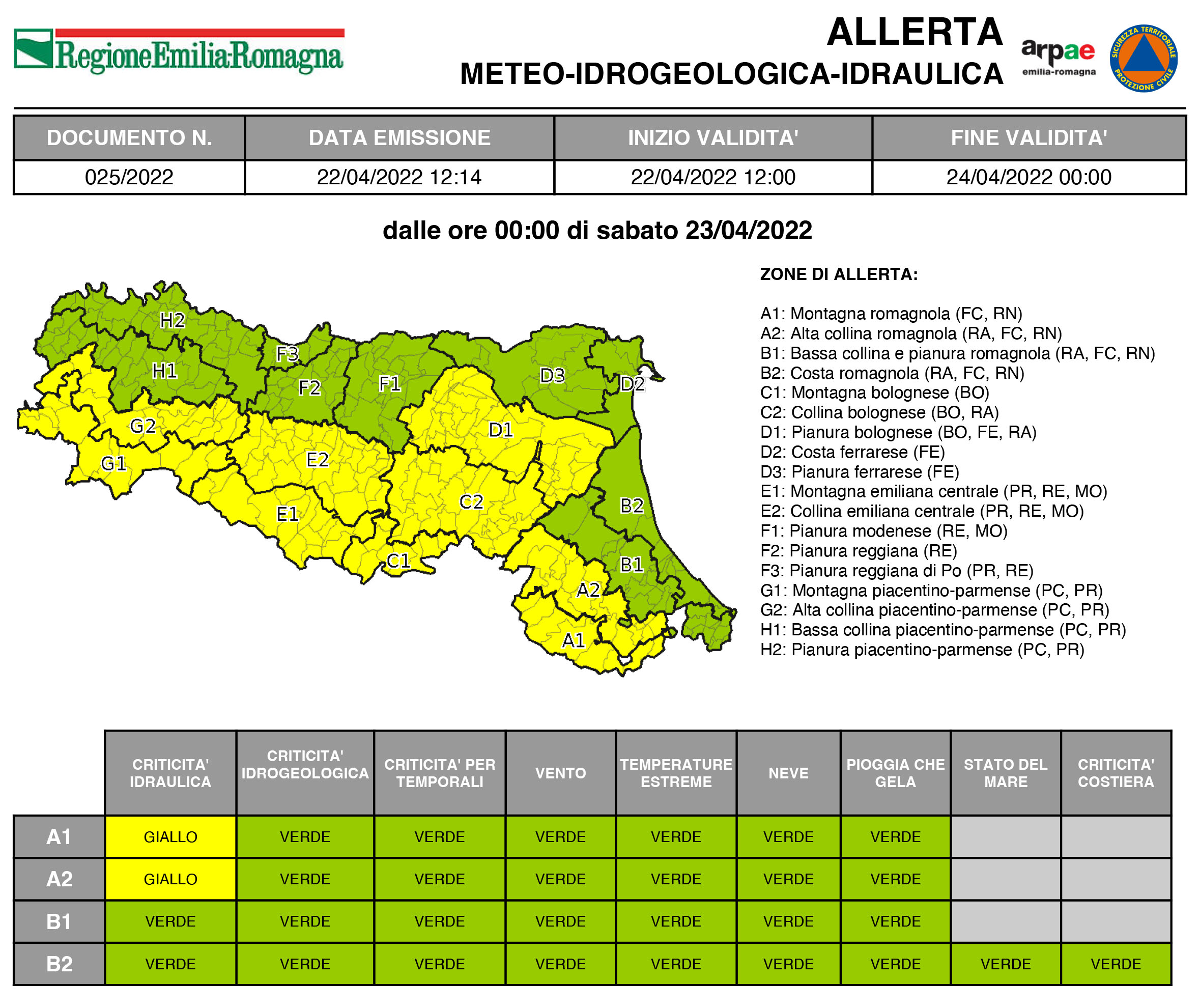 La protezione civile regionale ha diffuso una allerta meteo “gialla” per criticità idraulica sul territorio di Rimini per sabato 23 aprile.