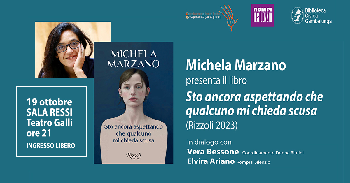 “Sto ancora aspettando che qualcuno mi chieda scusa” è il titolo del nuovo libro della scrittrice e filosofa Michela Marzano in cui l’autrice si interroga su uno degli aspetti più delicati e controversi della violenza sulle donne, quello del "consenso". Il romanzo sarà presentato in una conversazione con l’autrice giovedì 19 ottobre, al Teatro Galli (Sala Ressi, ore 21, apertura sala ore 20.30, ingresso libero).