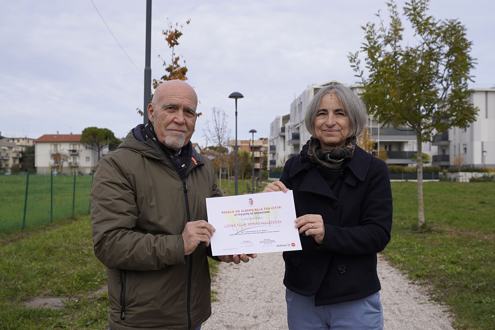 Tra i donatori presenti alla cerimonia figurano il Lions Club Rimini Malatesta, l’associazione Le città visibili, l’azienda Bluenext e altri cittadini privati, che hanno contribuito alla piantumazione dei nuovi alberi. Alla sistemazione delle piante hanno collaborato anche alcuni volontari del gruppo CIVIVO, che si prendono cura del verde del Parco Morena Ugolini, di via Fantoni.